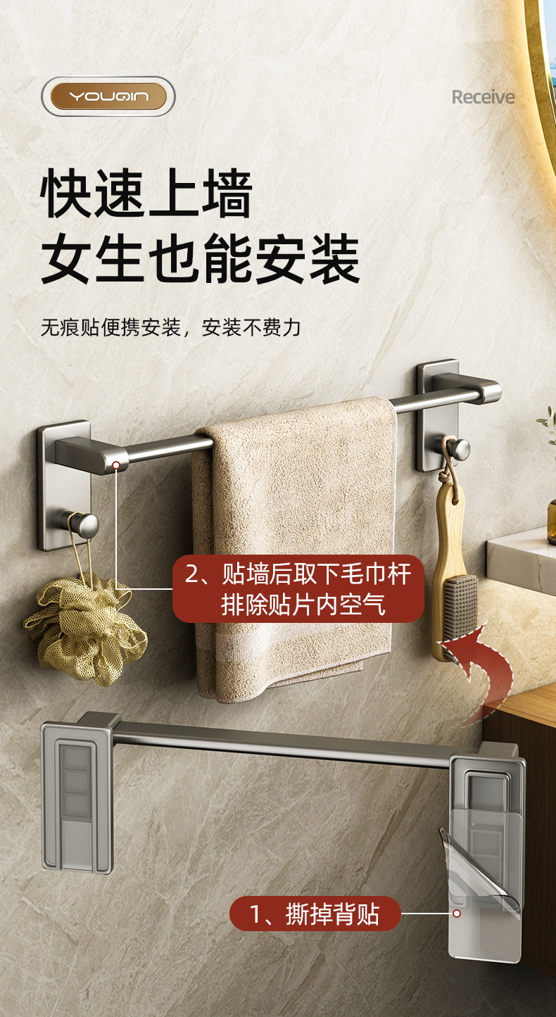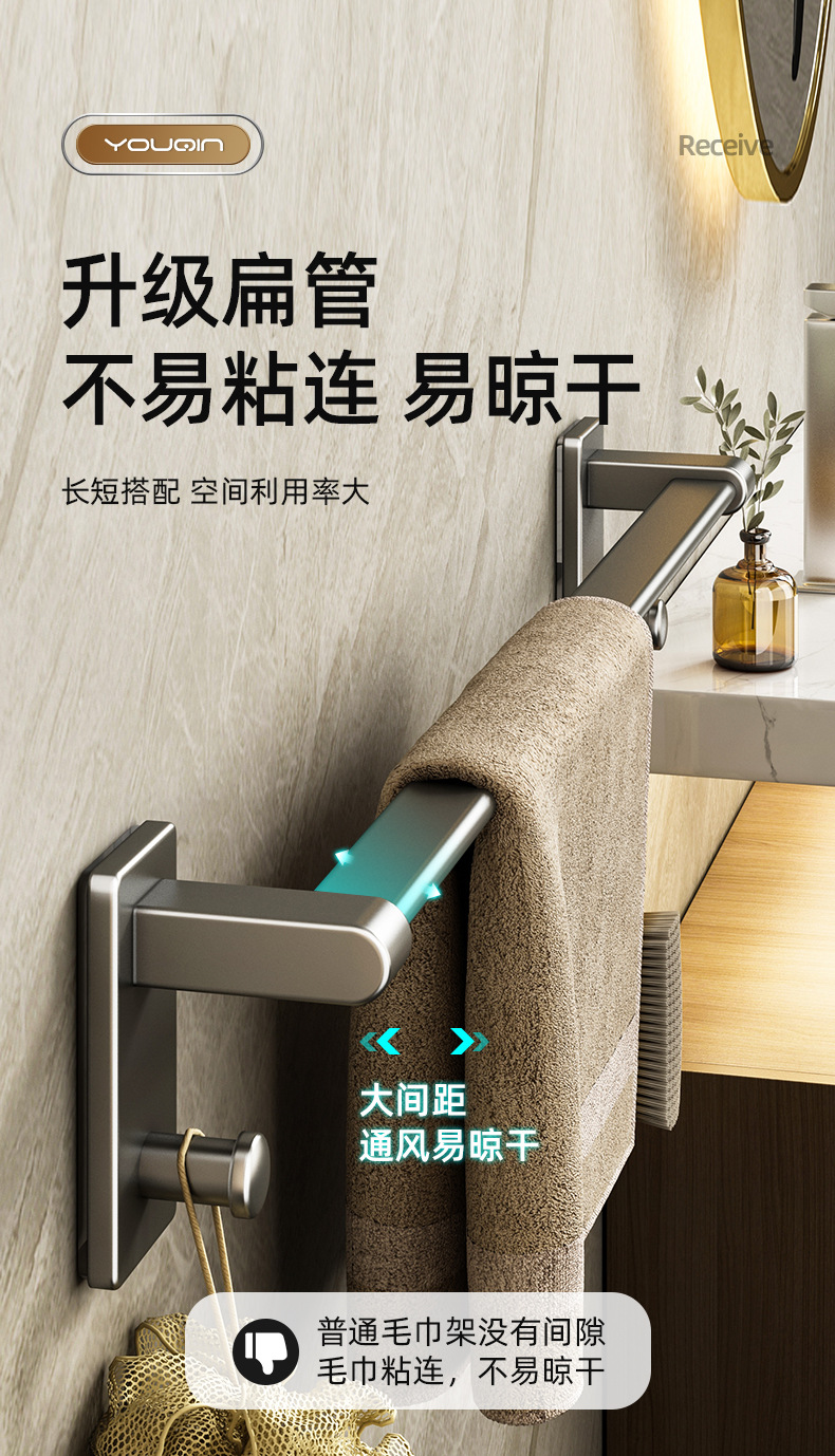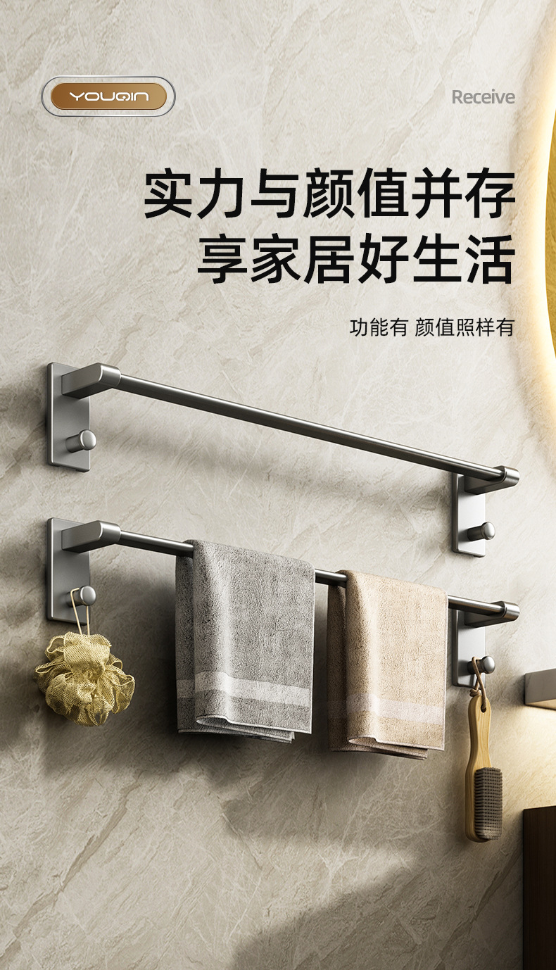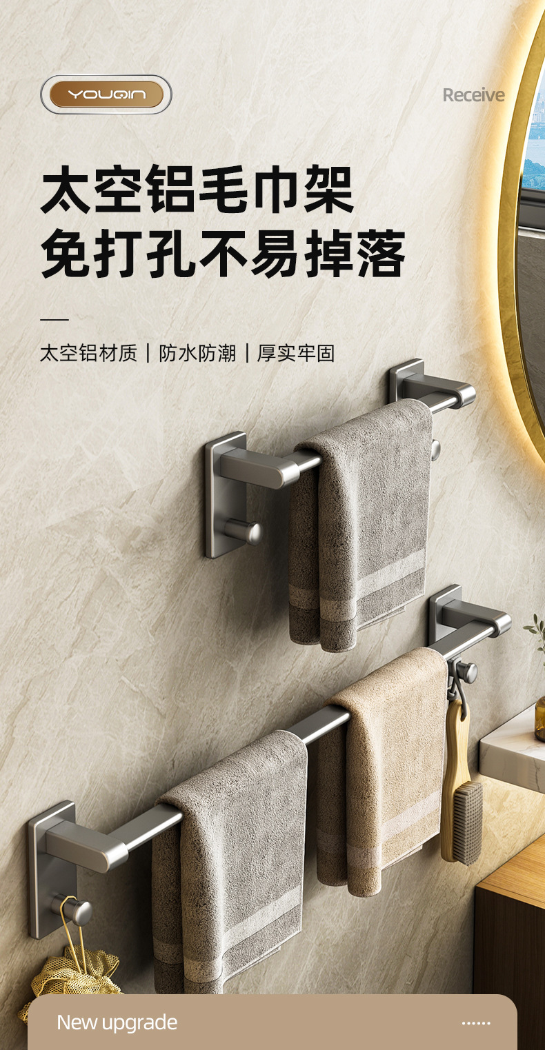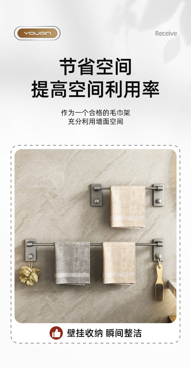 수건 선반 화장실 구멍 없는 벽걸이 랙 욕실 타월 싱글 폴 화장실 화장실 화장실 수납 랙스토어 가기