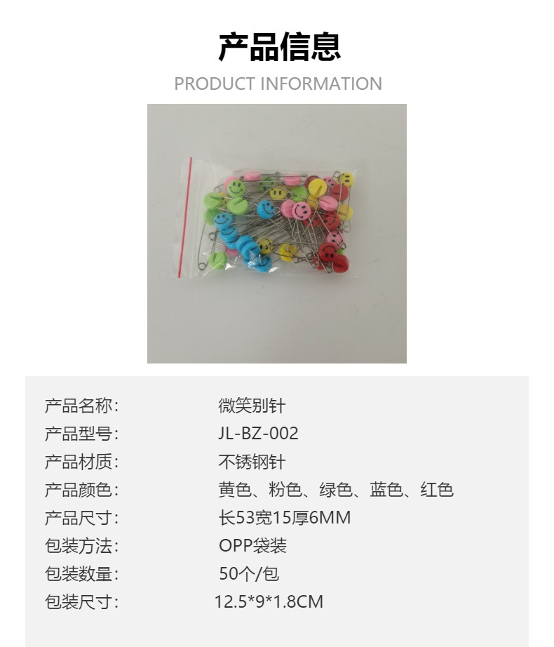 50 Pct의 안전 핀 키즈 캔디 컬러 미소 귀여운 아기 안전 핀 플라스틱 머리 웃는 얼굴 핀