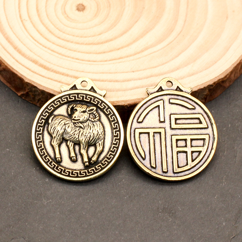 황동 펜던트 조디악 행운의 작은 선물 조디악 마스코트 창조적 인 남성과 여성의 작은 청동 키 체인 펜던트
