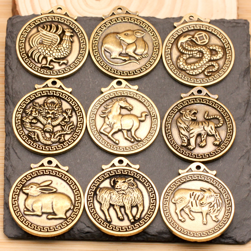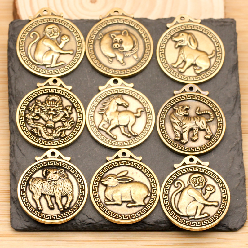 황동 펜던트 조디악 행운의 작은 선물 조디악 마스코트 창조적 인 남성과 여성의 작은 청동 키 체인 펜던트스토어 가기