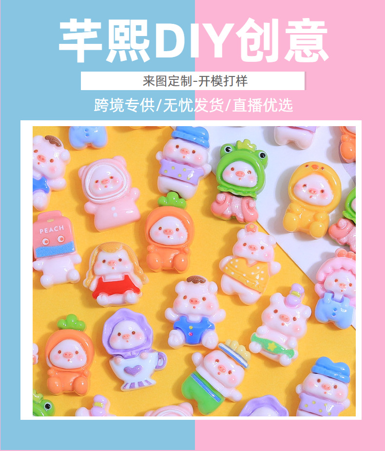새로운 미니 귀여운 돼지 어린이 재미 DIY 크림 접착제 수지 액세서리 도매 창조적 인 신발 버클 머리핀 소재스토어 가기