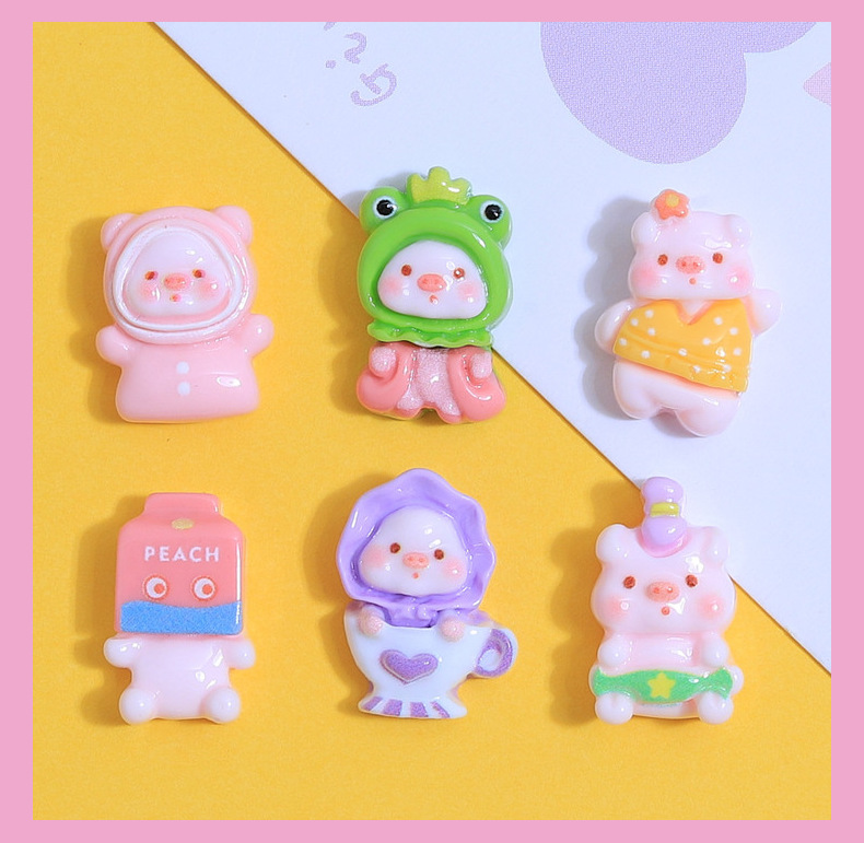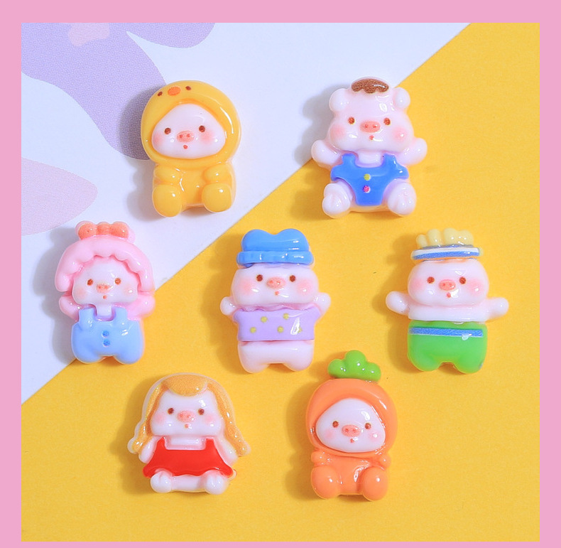 새로운 미니 귀여운 돼지 어린이 재미 DIY 크림 접착제 수지 액세서리 도매 창조적 인 신발 버클 머리핀 소재