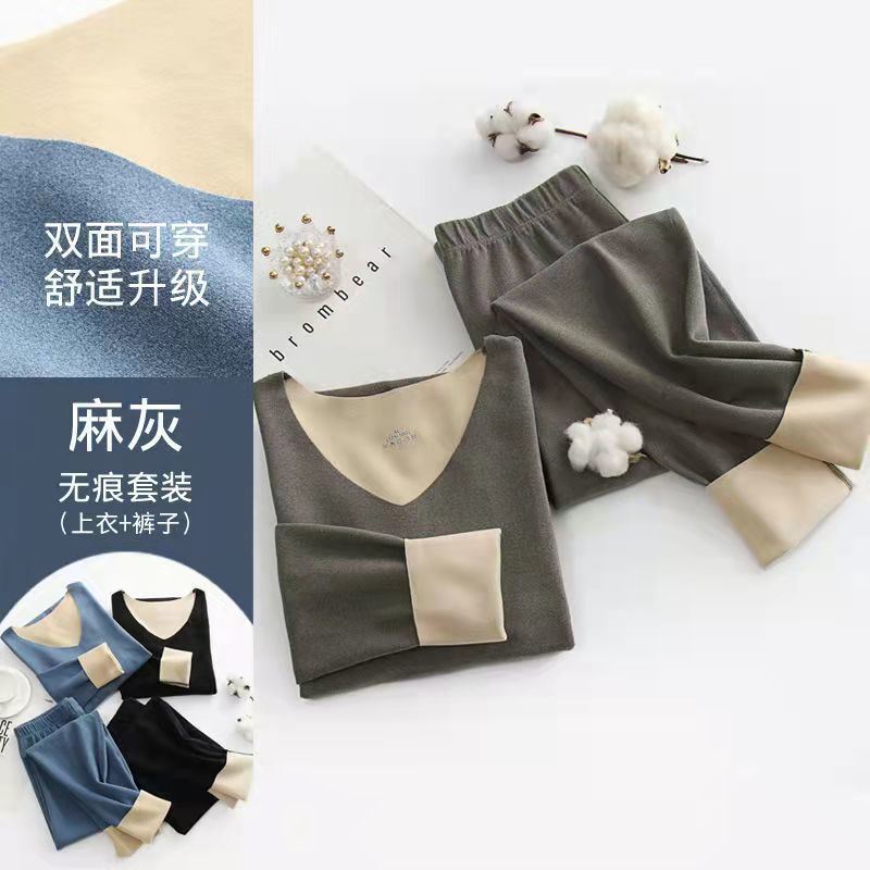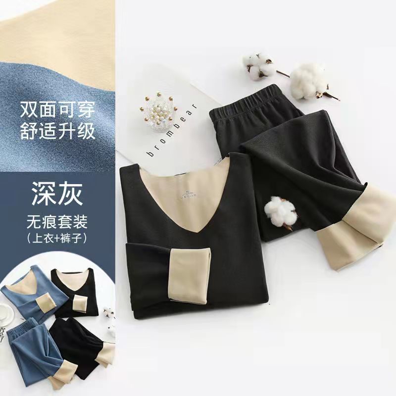 겨울 기모 두꺼운 가을 옷과 긴 존스 남자의 바닥 원활한 양털 울 실크 열 속옷 세트 여성을위한스토어 가기
