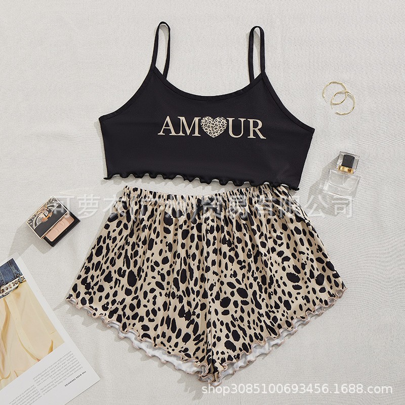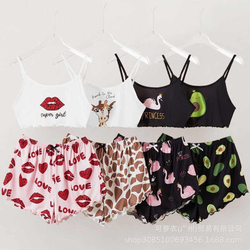 대외 무역 새로운 섹시한 멜빵 반바지 잠옷 여자의 여름 세트 잠옷 유럽과 미국 가정 옷 투피스 pjs