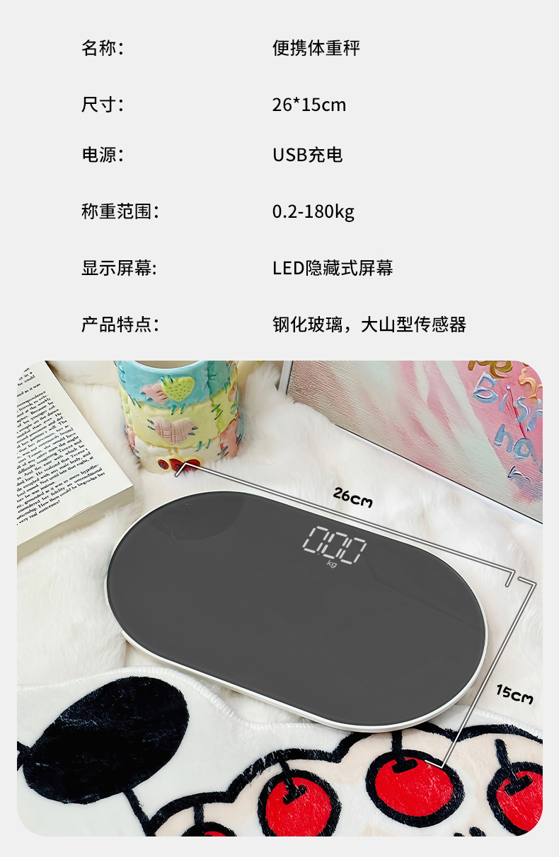 공장 직송 미러형 타원형 미니 전자 체중계 LED 화면 정밀 전자 체중계 건강 체중계스토어 가기