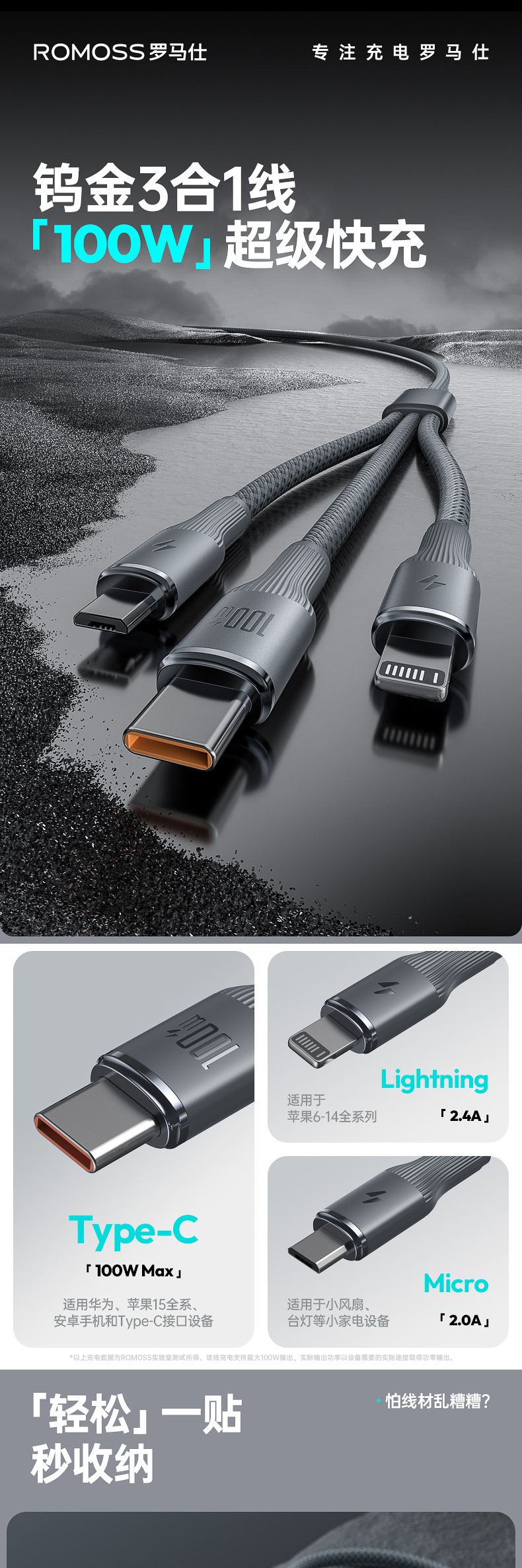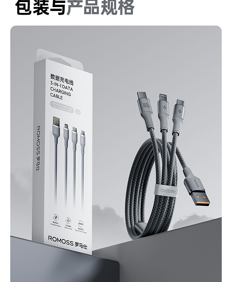 Apple Huawei 휴대 전화 1 대 3 타입 자동차 충전 라인을위한 로맨스 3 대 1 데이터 케이블 고속 충전스토어 가기