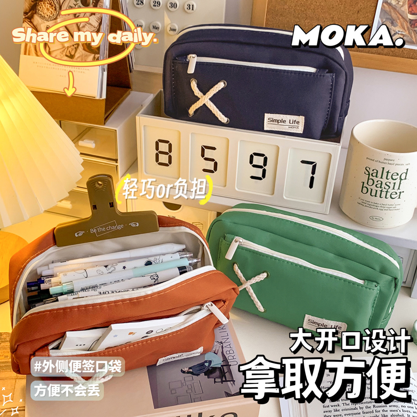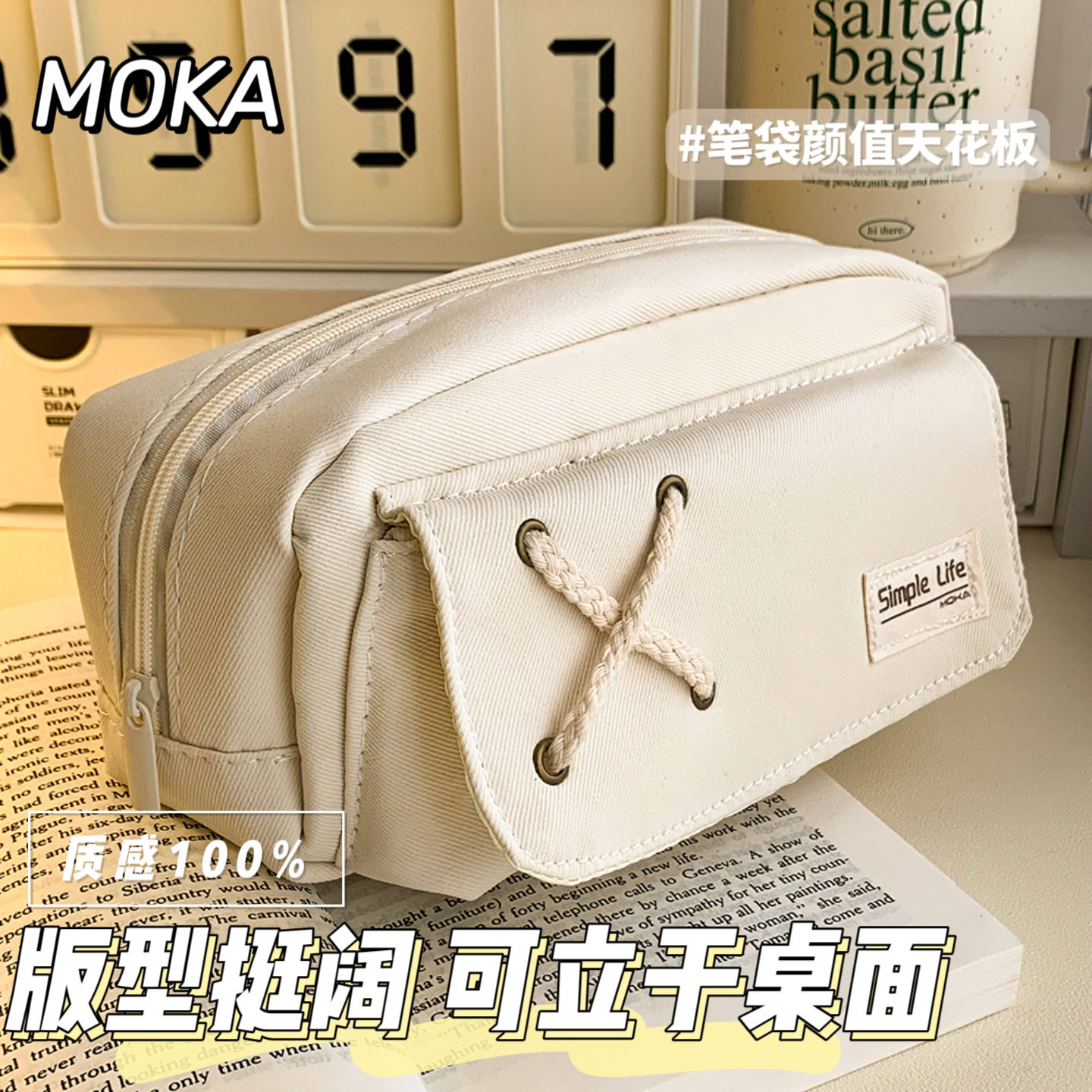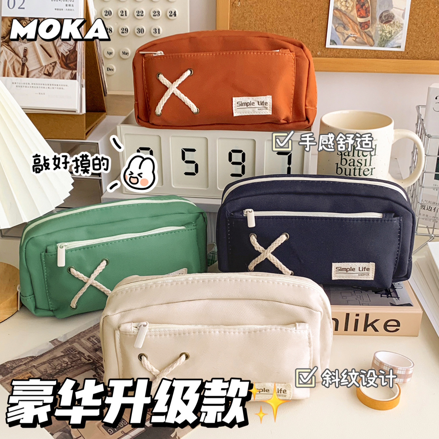 심플 캔버스 필통 대용량 문구 케이스 초등학생 연필 문구 수납 가방 더블 필통 도매