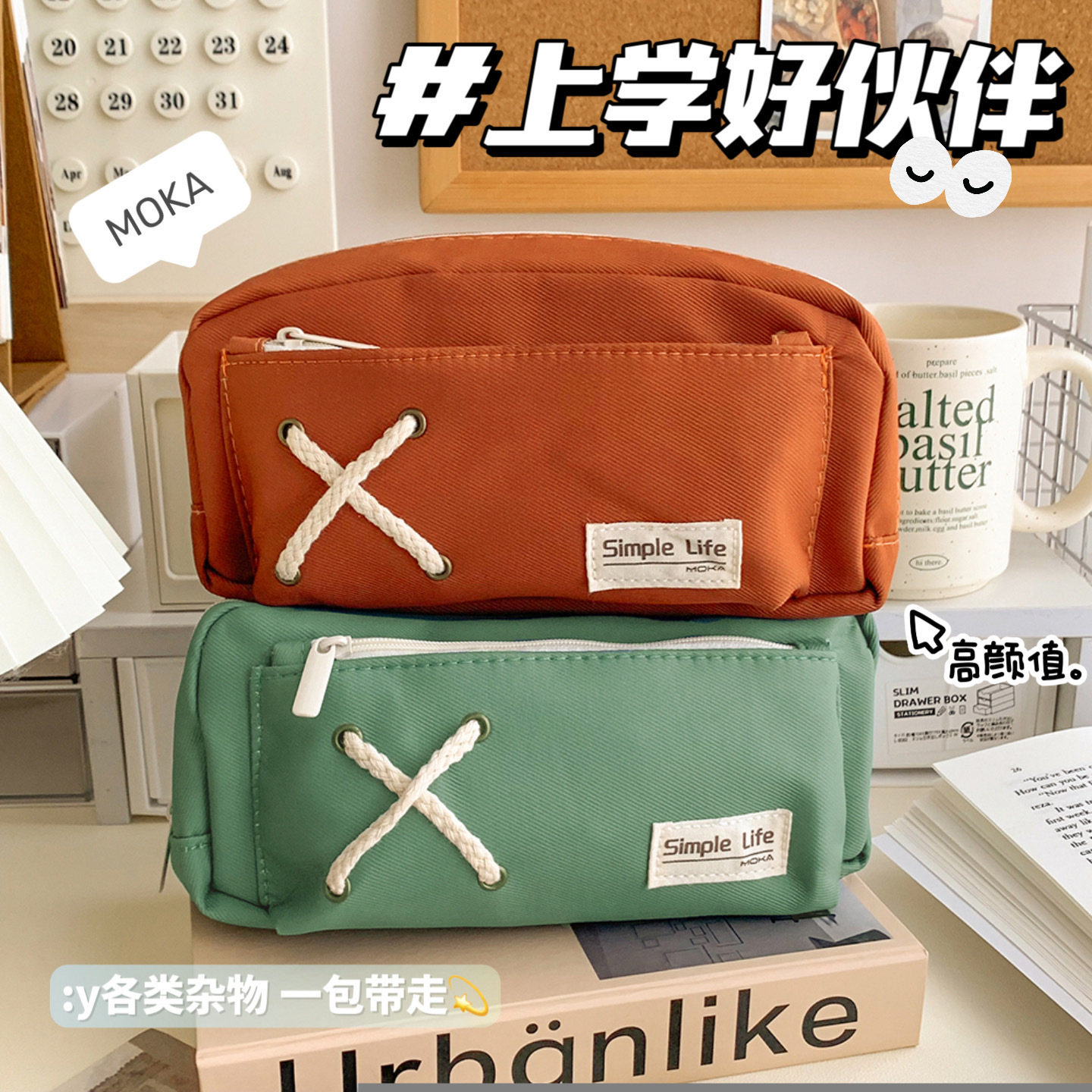 심플 캔버스 필통 대용량 문구 케이스 초등학생 연필 문구 수납 가방 더블 필통 도매스토어 가기