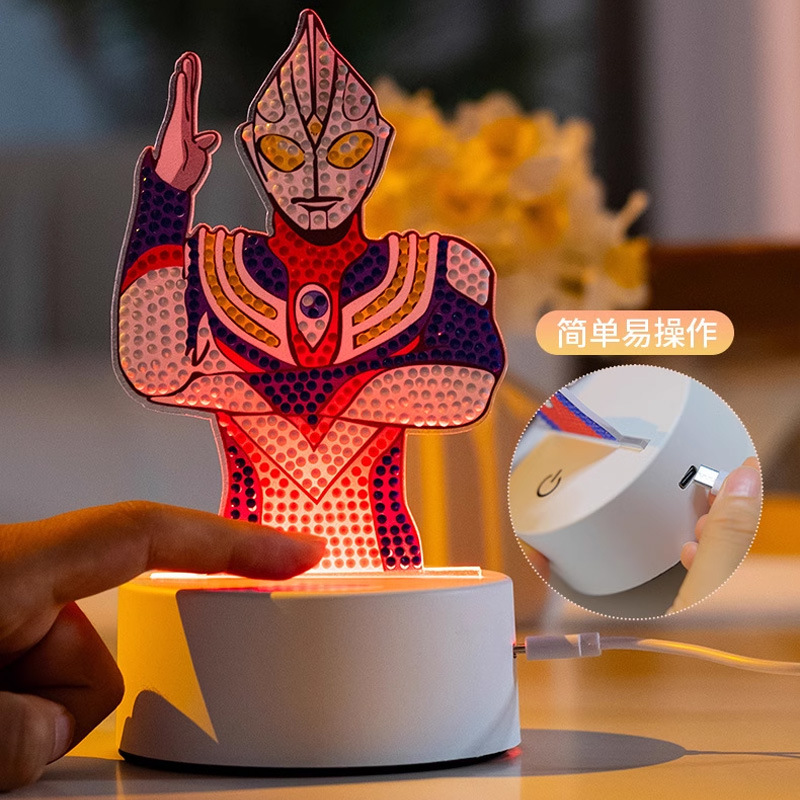만화 창의적 센서 야간등 어린이 수제 DIY 다이아몬드 페인팅 교육용 장난감 야시장 판매 아크릴 램프스토어 가기