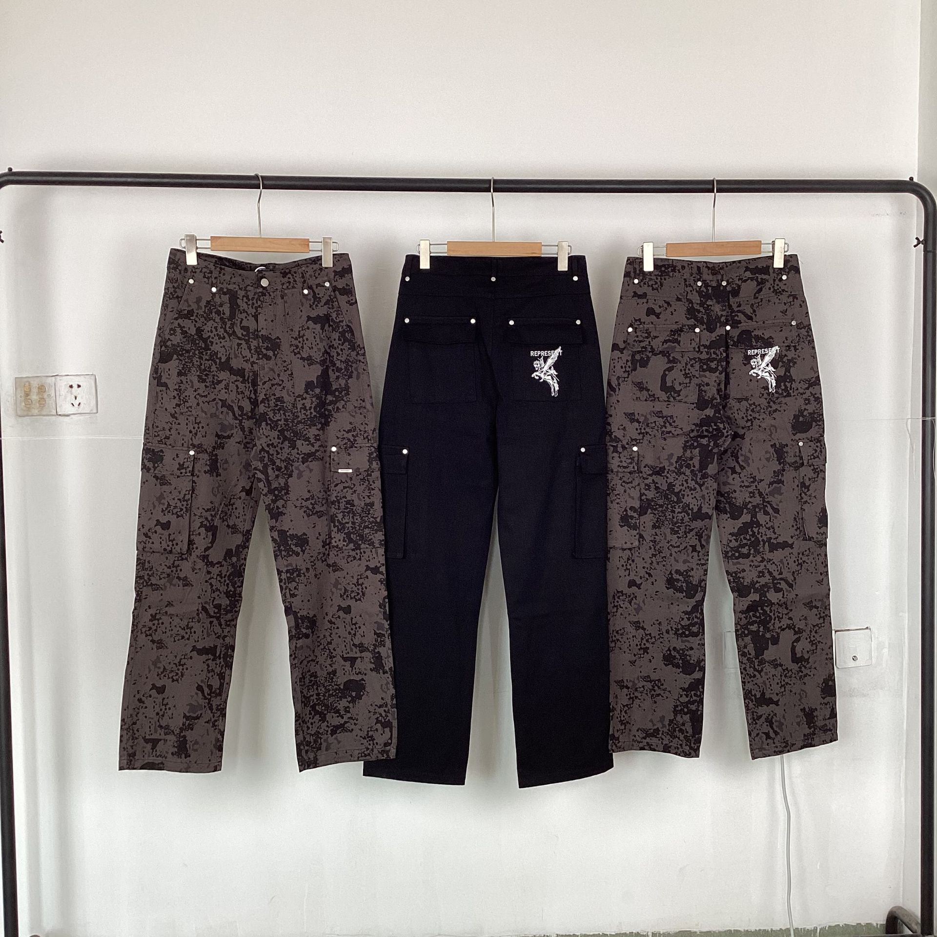 대외 무역 2023 가을 겨울 신패션 브랜드 대표 단색 레터 인쇄 작업복 바지 남녀 올매치