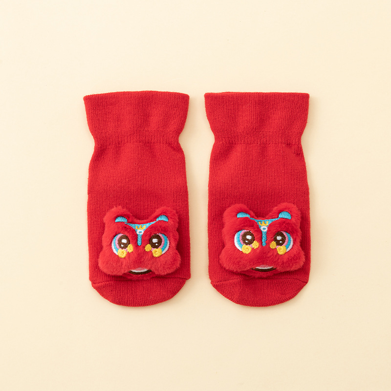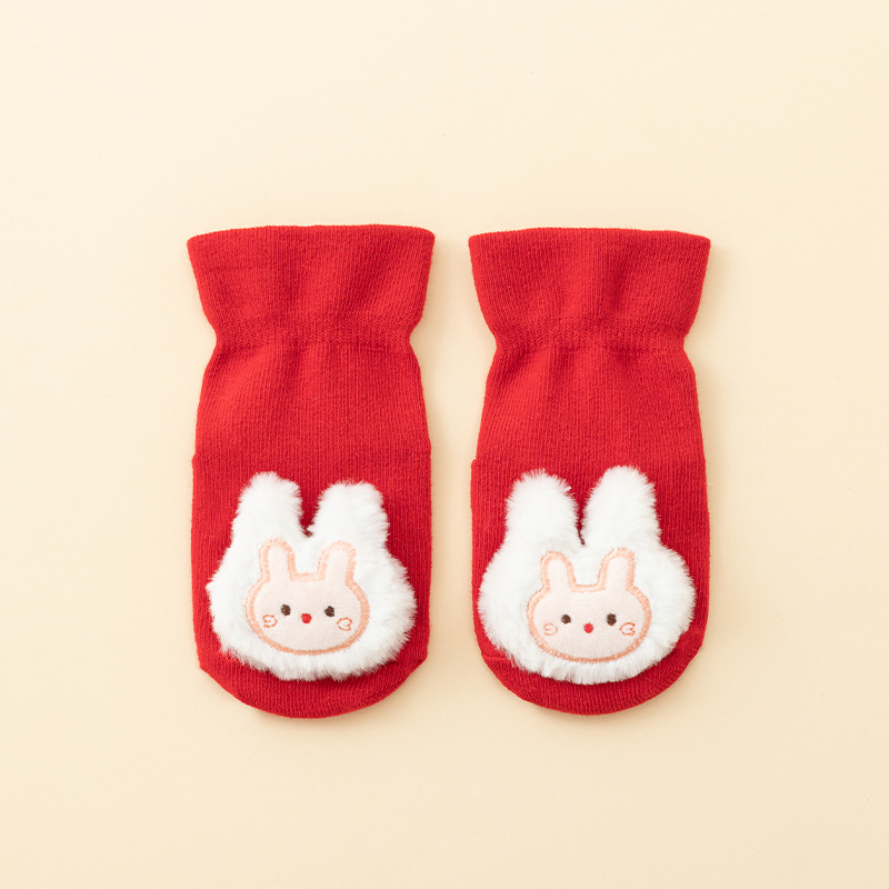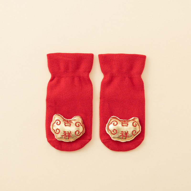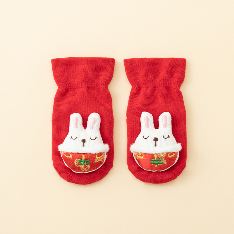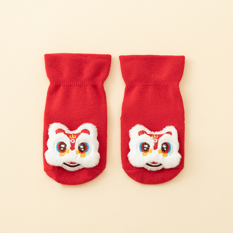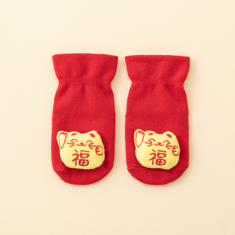 신생아 가을과 겨울 기모 두꺼운 카테고리면 붉은 테리 아기 새해 바닥 양말 도매 6