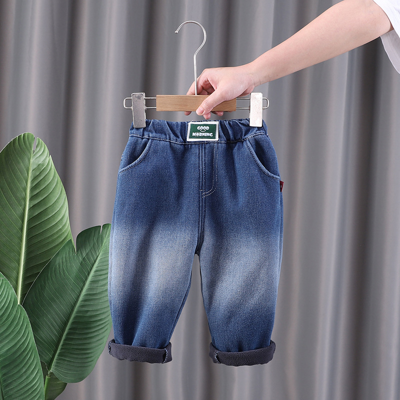어린이 기모 청바지 2023 새로운 겨울 아기 소년 두꺼운 따뜻한 캐주얼 바지 어린이 겨울 바지 조수스토어 가기