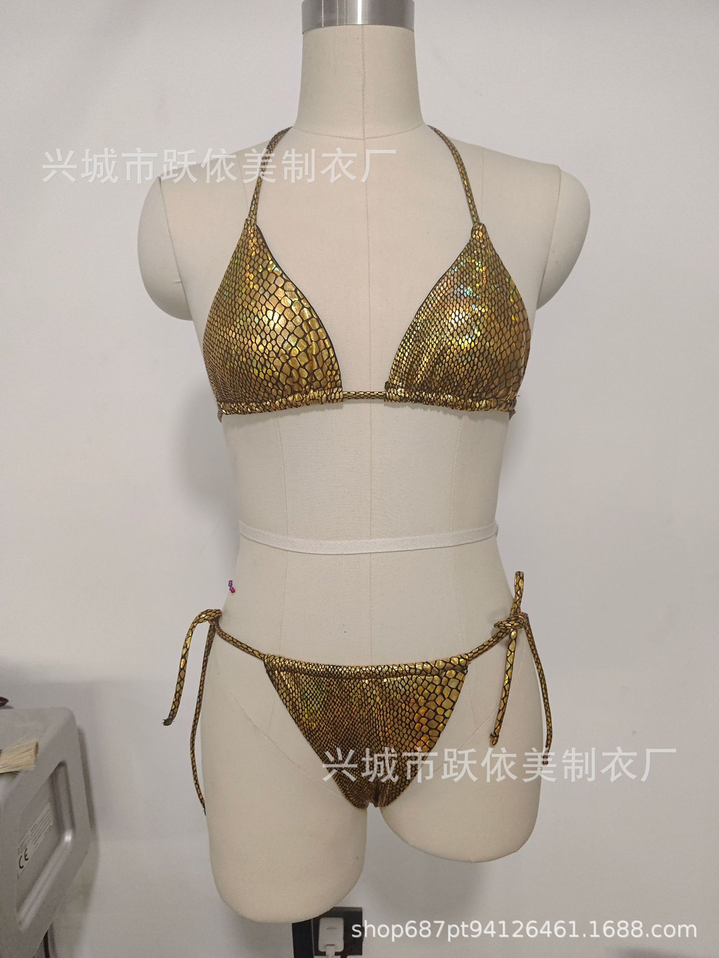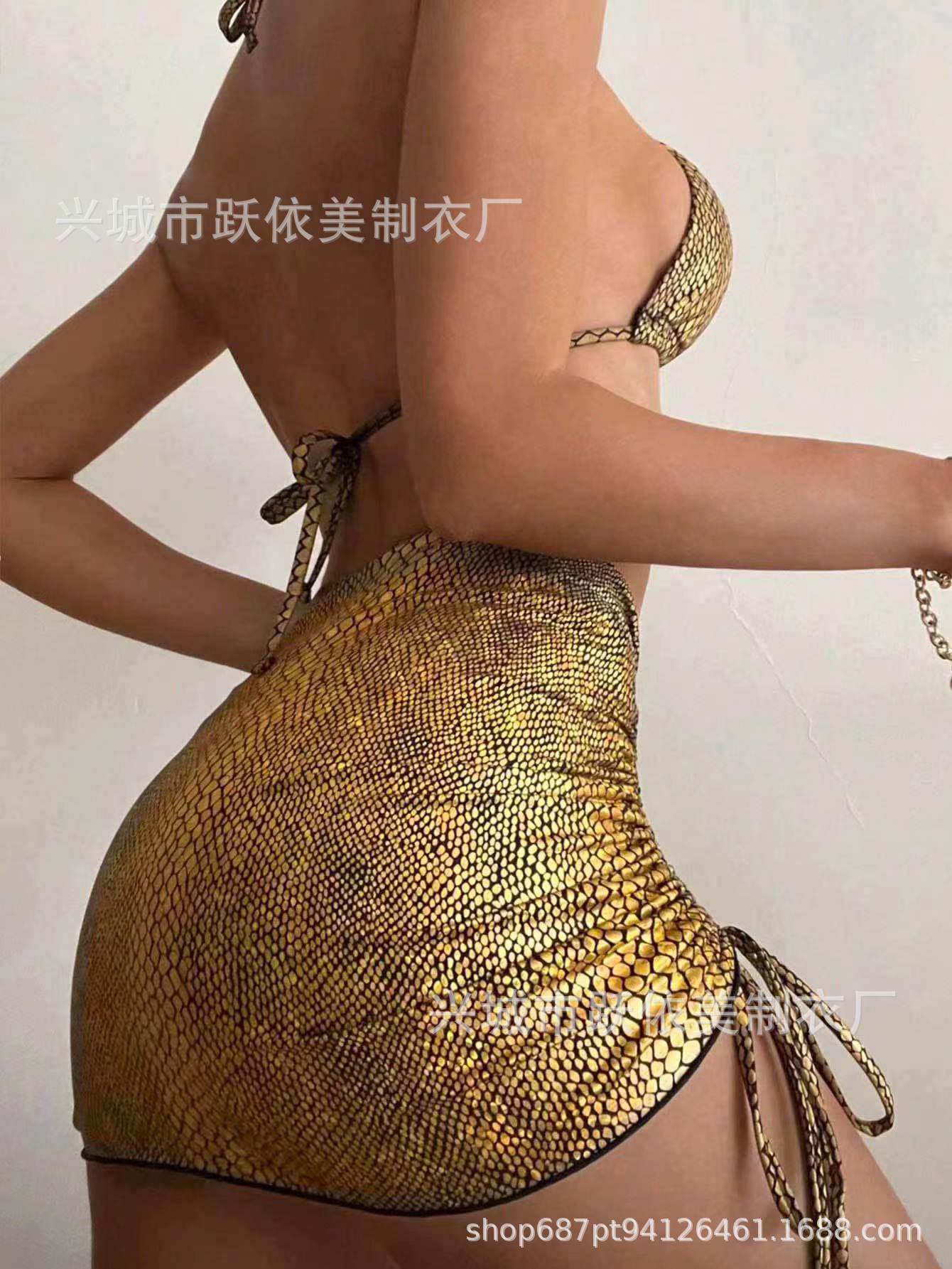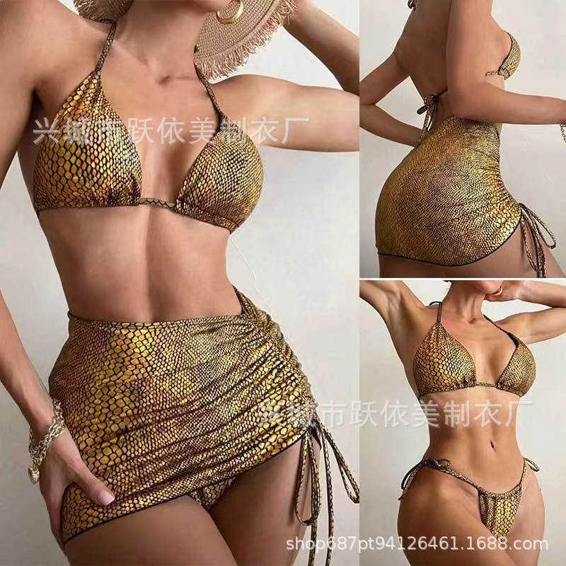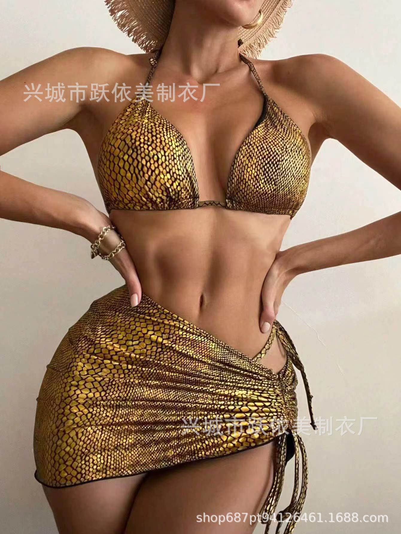 2023 유럽과 미국의 새로운 크로스 보더 비키니 밝은 섹시한 목 등이없는 3 종 세트 엉덩이 수영복스토어 가기