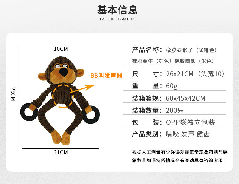 애완 동물 음성 봉제 장난감 3 색 고무 반지 봉제 원숭이 하마 곰 애완 동물 장난감스토어 가기
