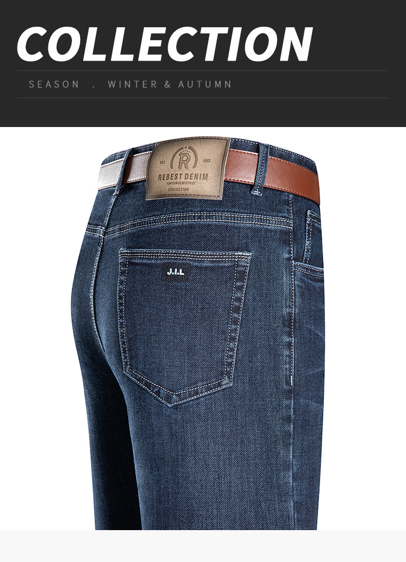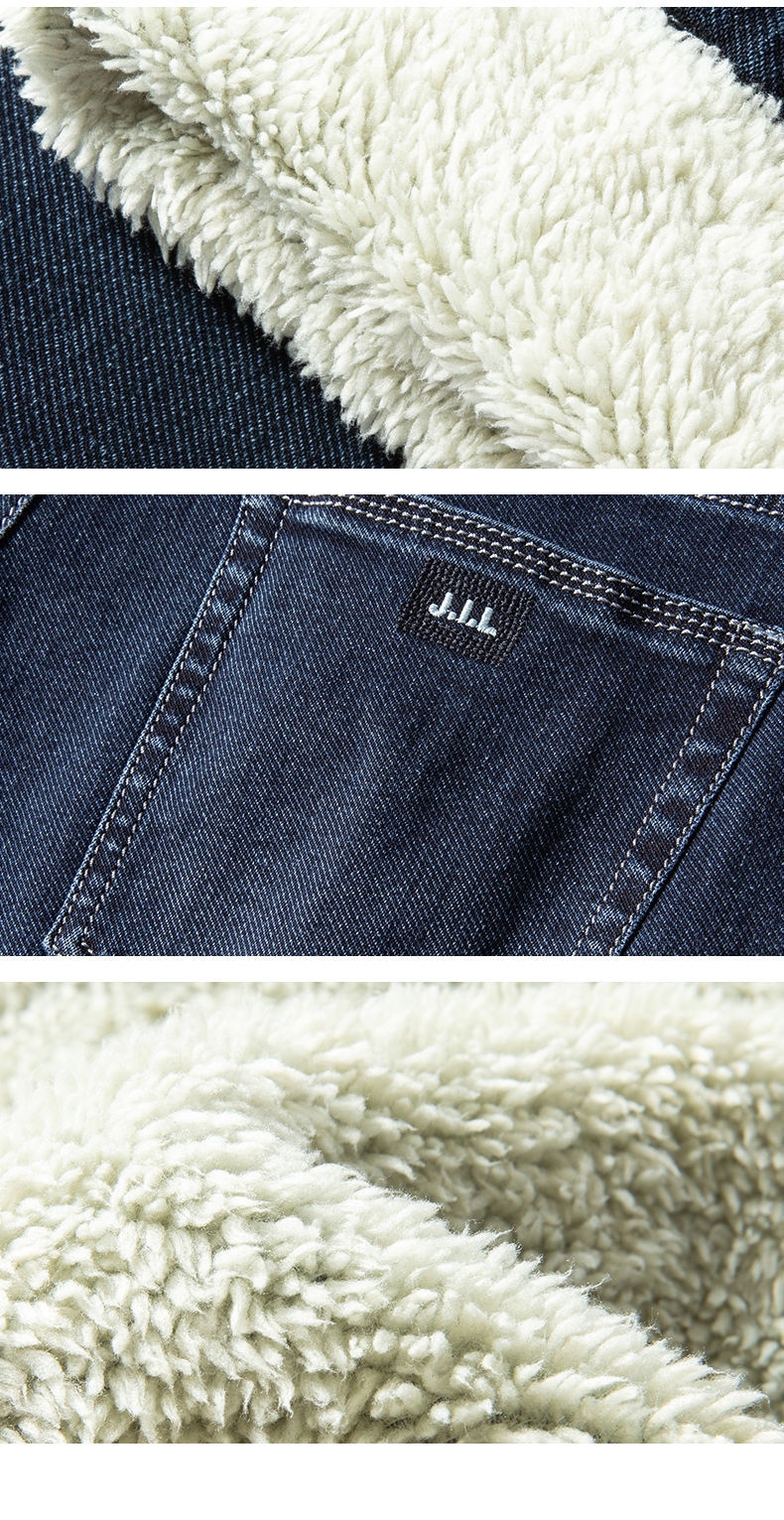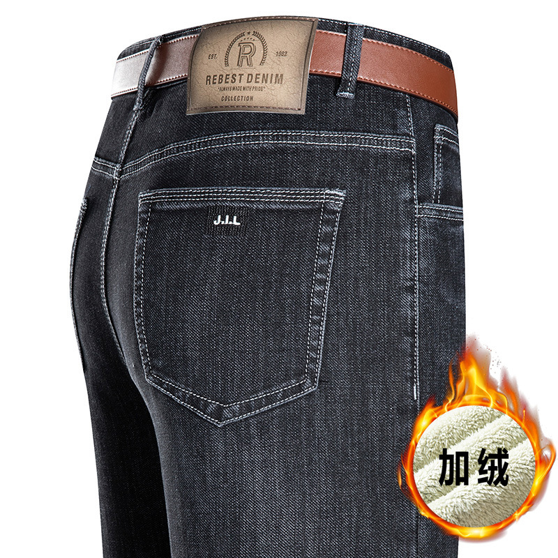 Hengyuanxiang 램 벨벳 남성용 기모 청바지 고급 가을과 겨울 새로운 스트레이트 바지 남성용 따뜻한 바지 남성복스토어 가기