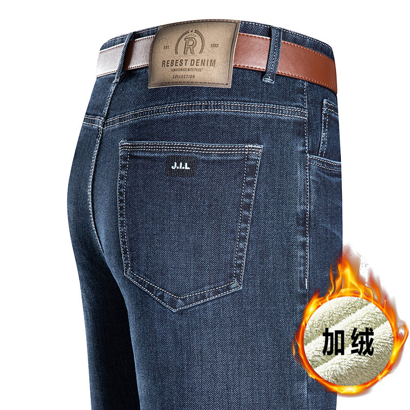 Hengyuanxiang 램 벨벳 남성용 기모 청바지 고급 가을과 겨울 새로운 스트레이트 바지 남성용 따뜻한 바지 남성복
