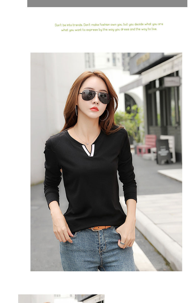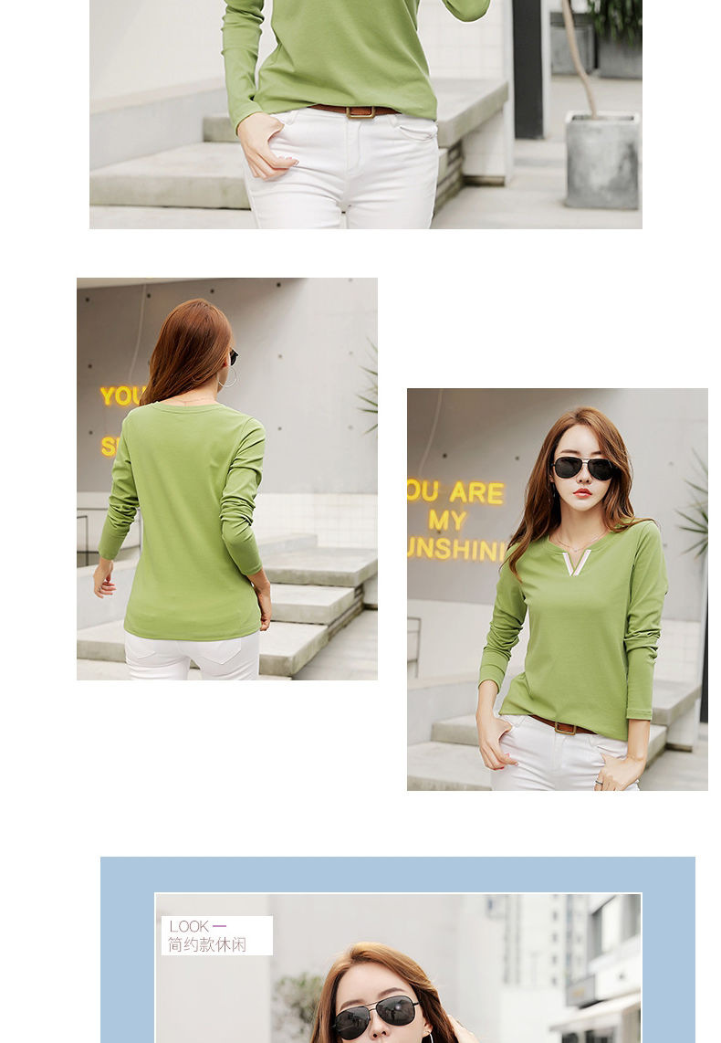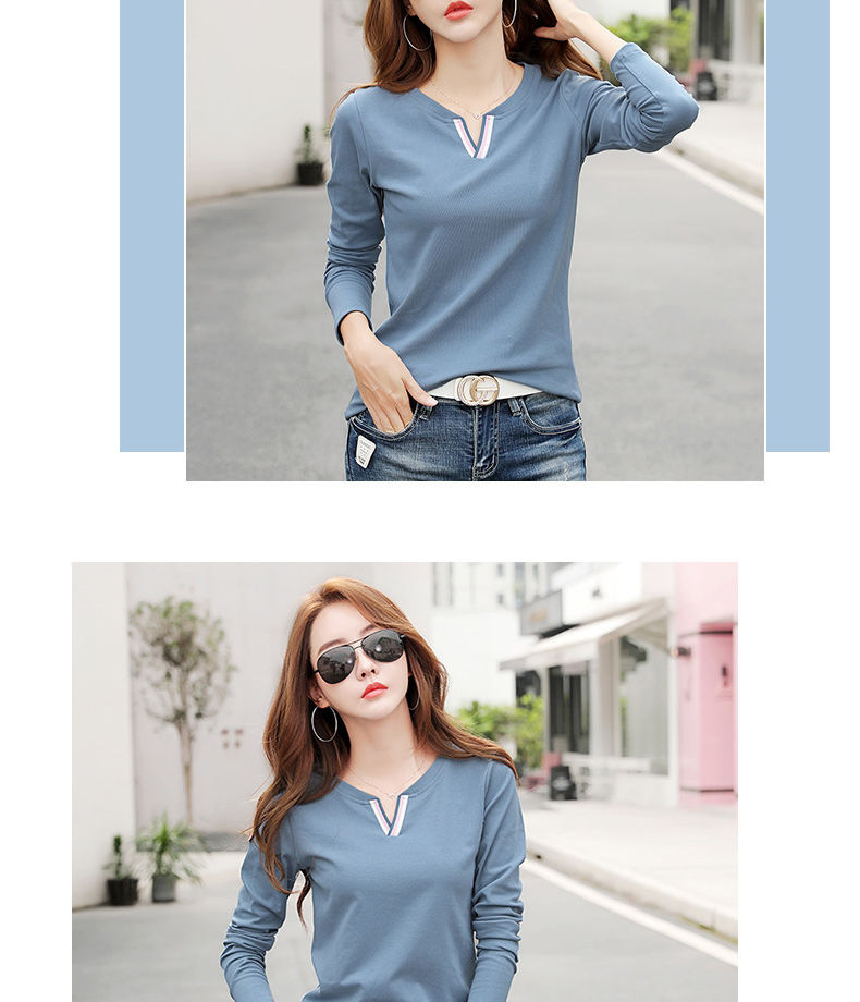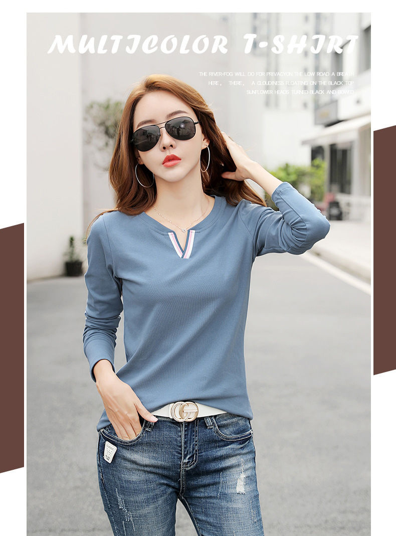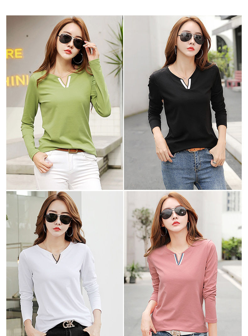 2023 가을 뉴 코튼 브이넥 긴팔 티셔츠 여성용 한국식 슬림핏 학생용 베이스 셔츠스토어 가기