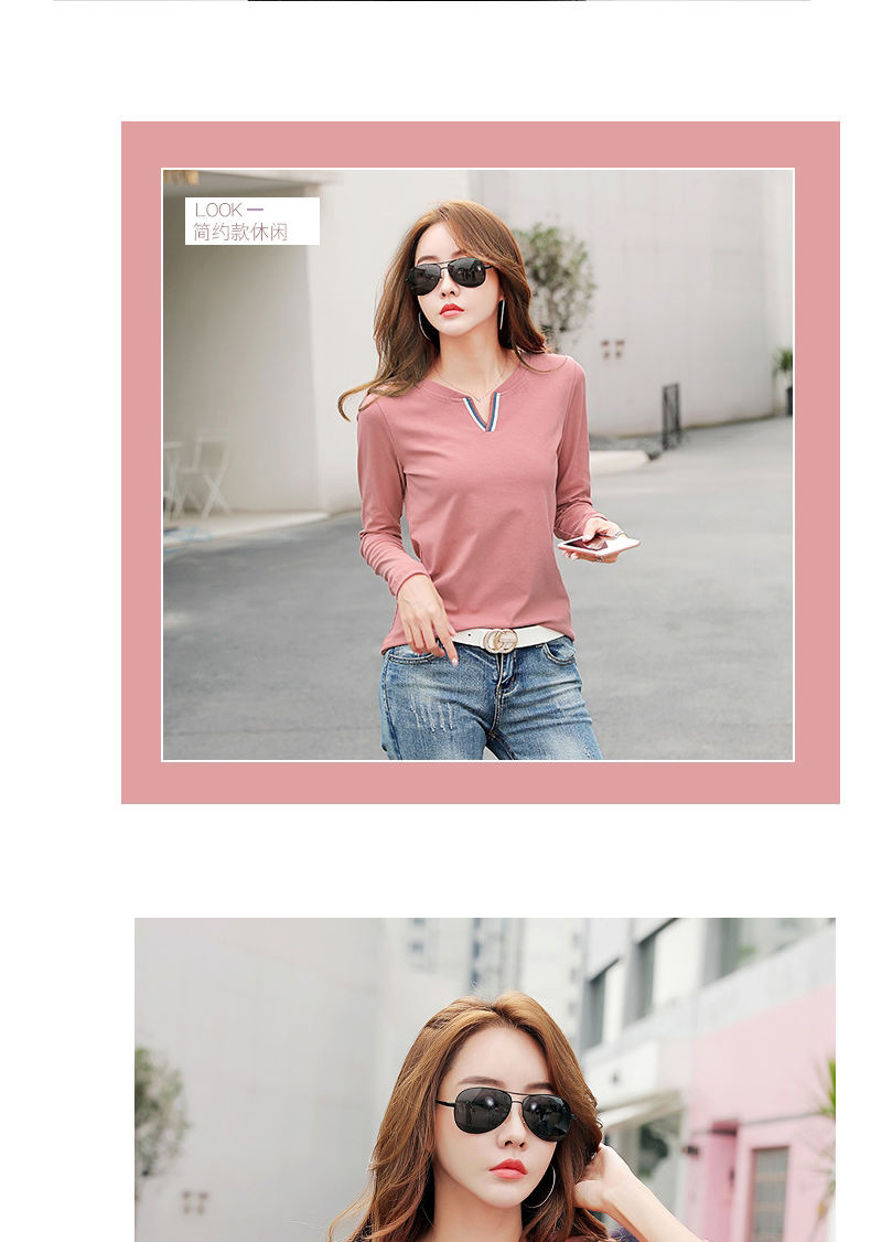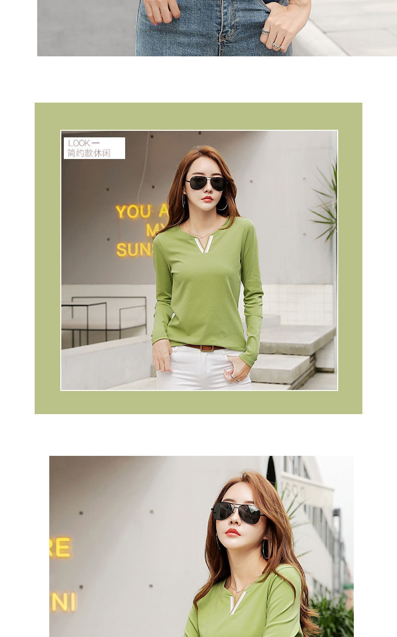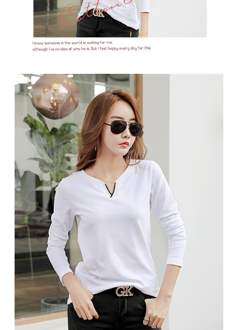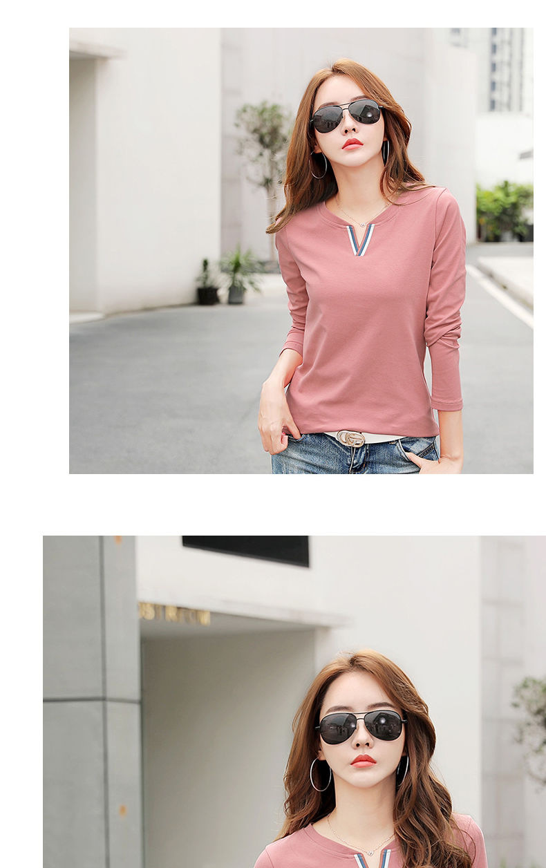 2023 가을 뉴 코튼 브이넥 긴팔 티셔츠 여성용 한국식 슬림핏 학생용 베이스 셔츠스토어 가기