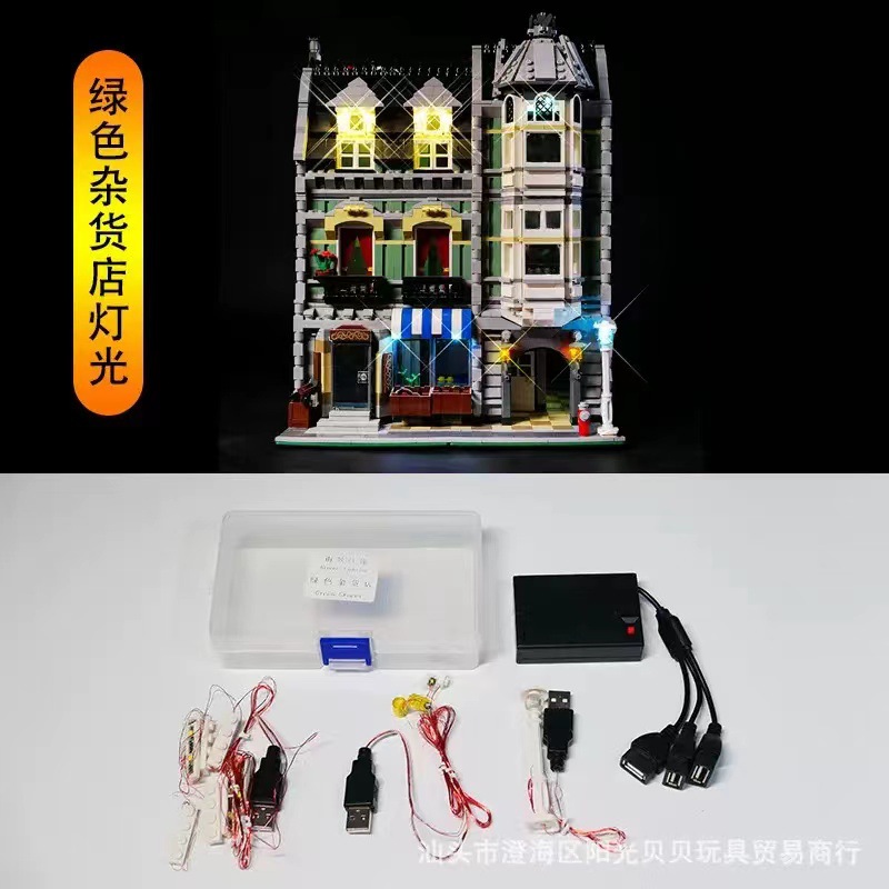 레고 스트리트 뷰 시리즈 10185 녹색 식료품 점 LED 조명 지원 램프와 호환되는 DIY 빌딩 블록 조명