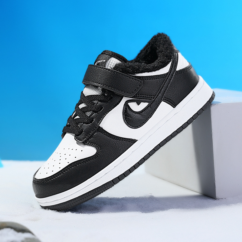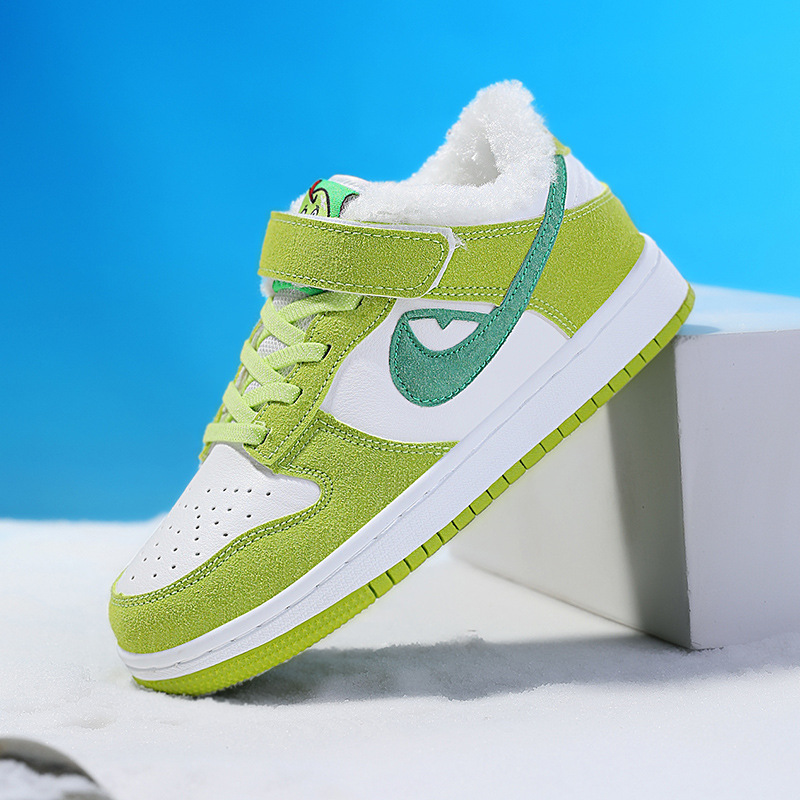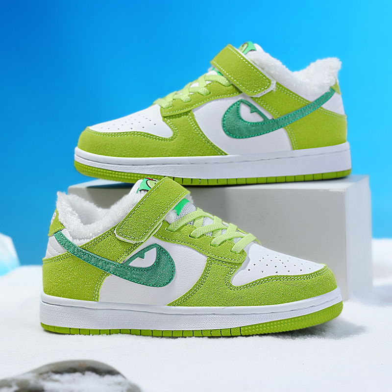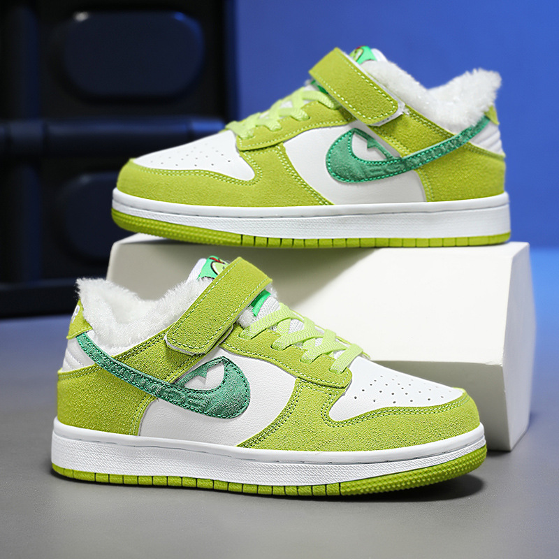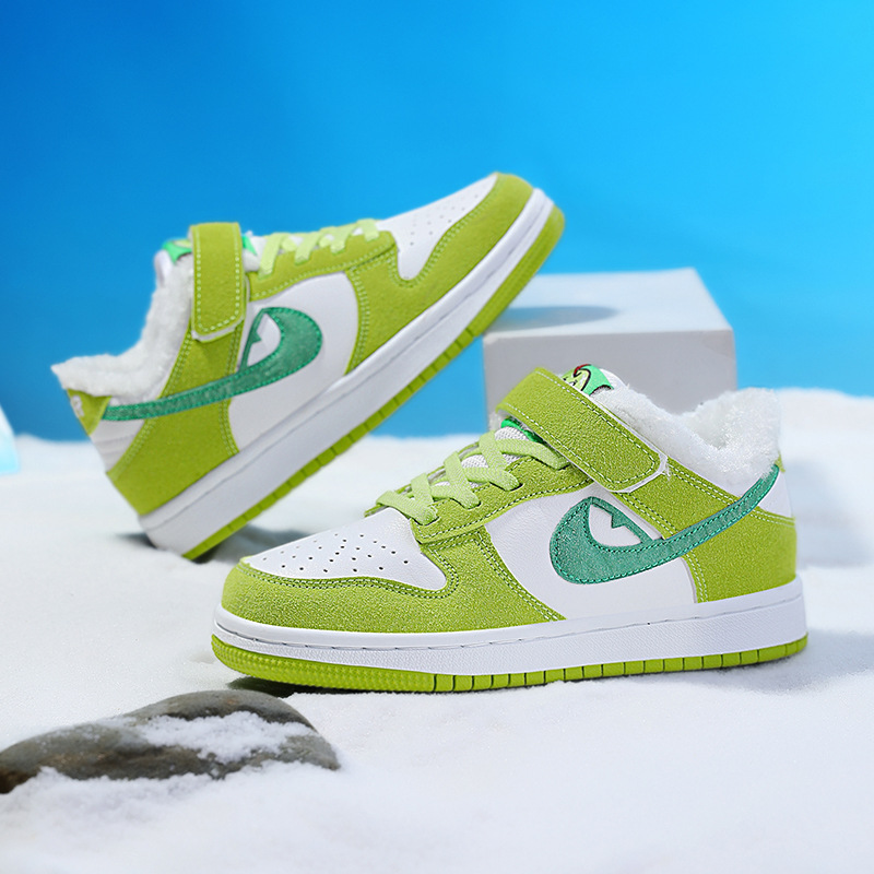 소년 신발 면화 신발 겨울 2023 새로운 어린이 운동화 가죽 패널 신발 그린 애플 기모 따뜻한 소년 신발