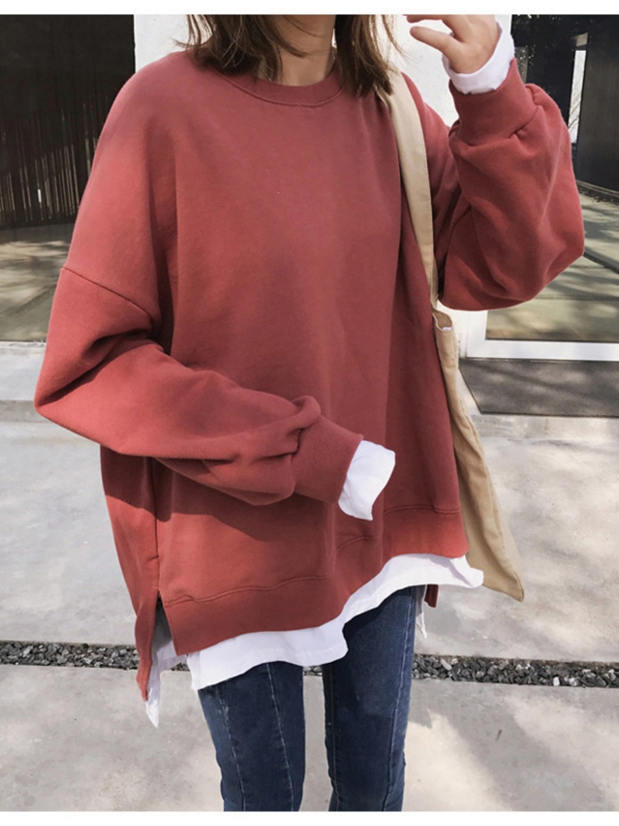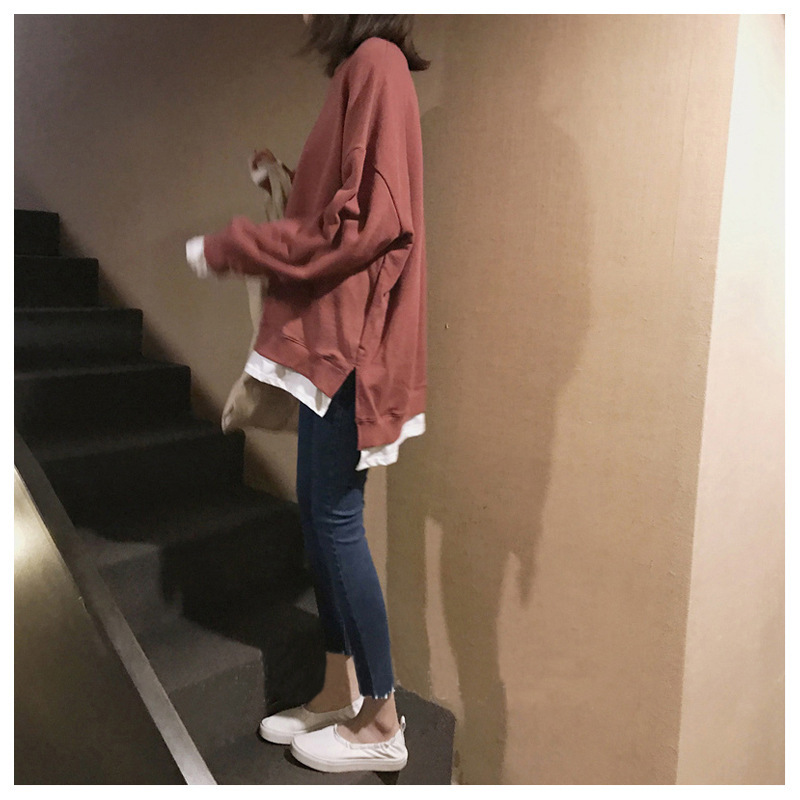 가짜 투피스 기모 스웨트 셔츠 여성의 새로운 가을과 겨울 한국어 느슨한 학생 BF 하라주쿠 풍향스토어 가기