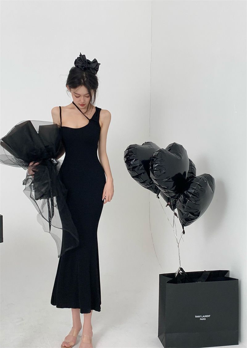 순수한 원하는 슬링 원피스 여자의 가을 카키 뜨거운 소녀 허리 우아한 엉덩이 중간 길이 피쉬 테일 스커트스토어 가기