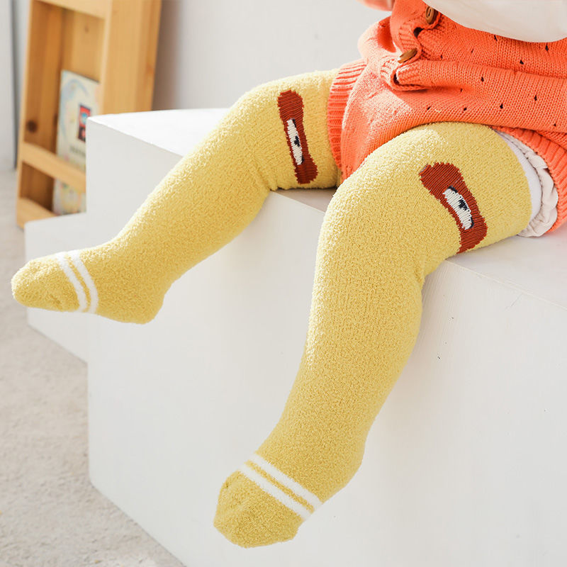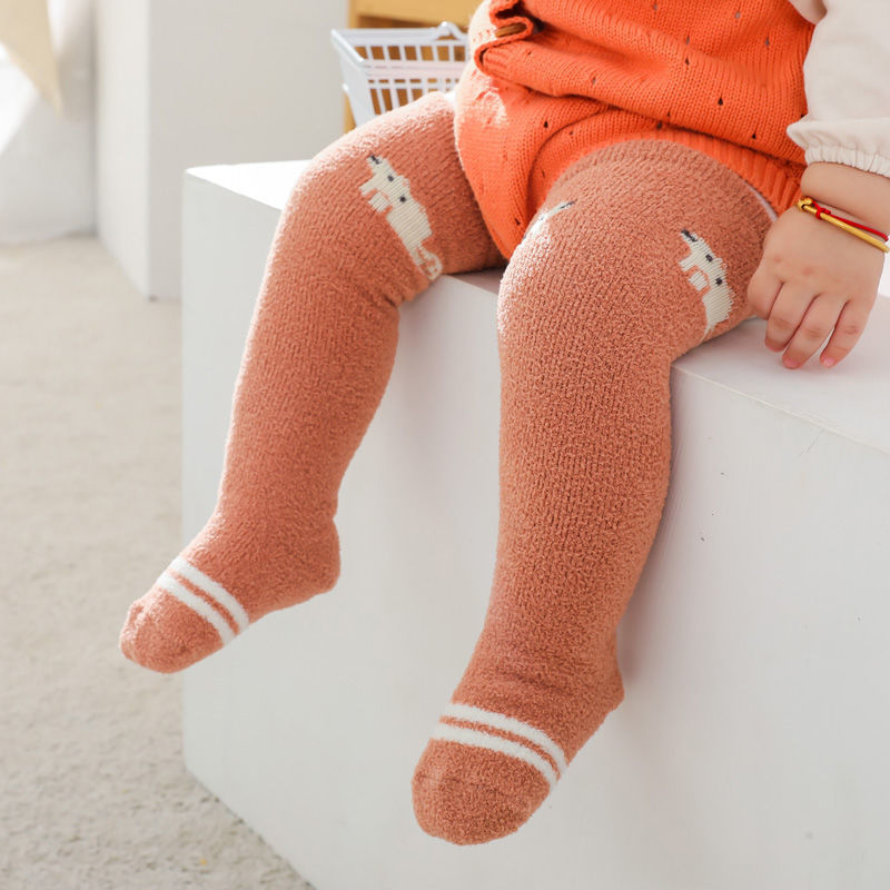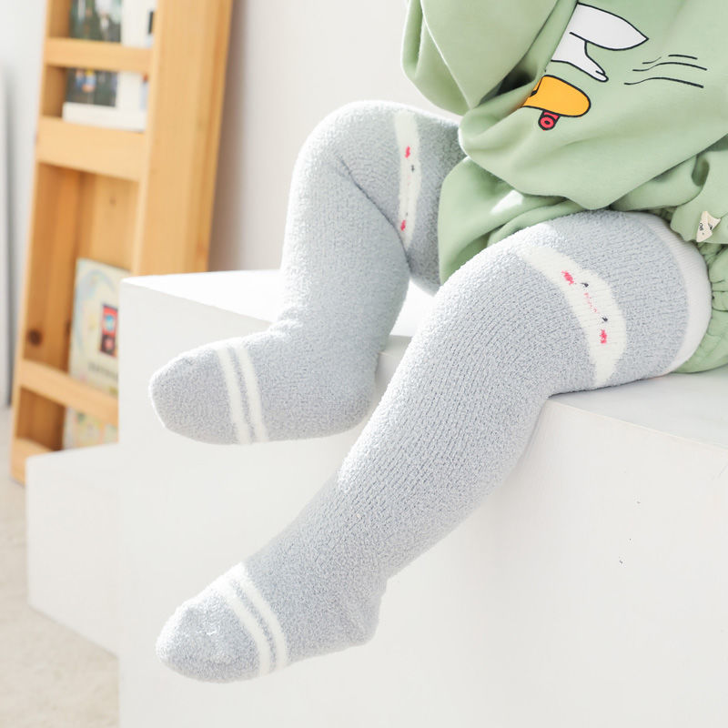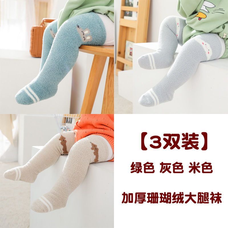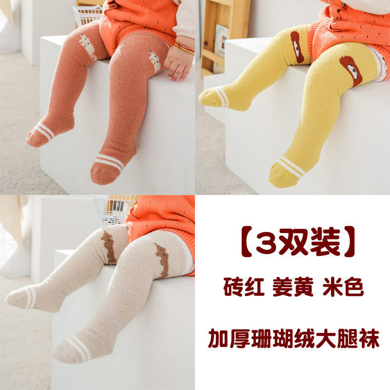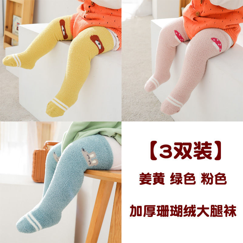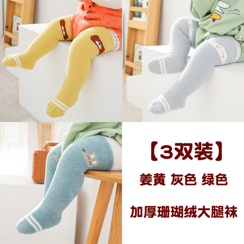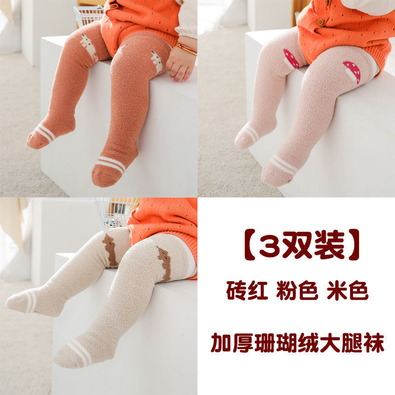 아기 스타킹 가을과 겨울 두꺼운 아기 무릎 다리 어린이 바닥 양말 만화 산호 양털 아기 양말