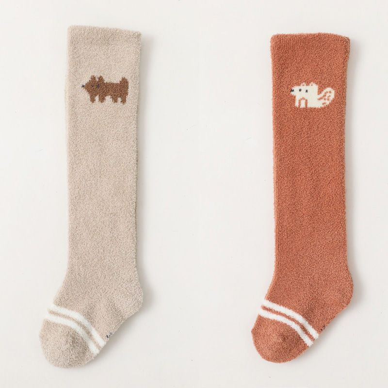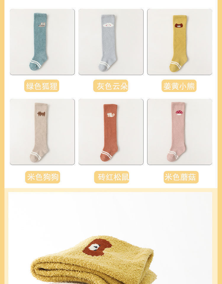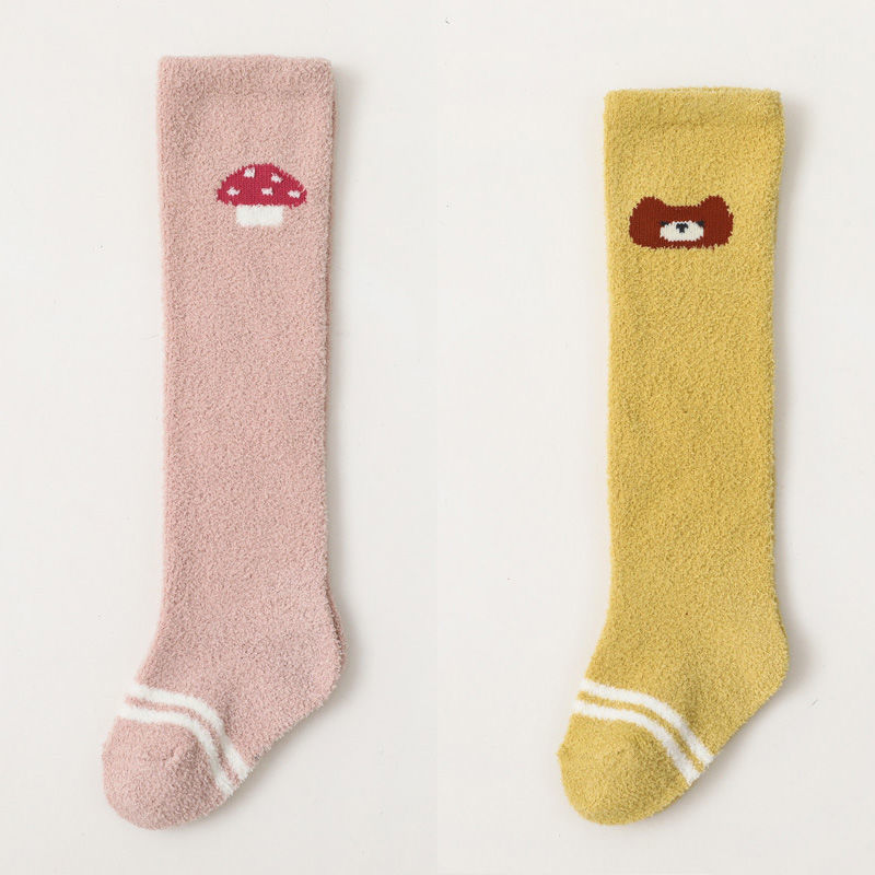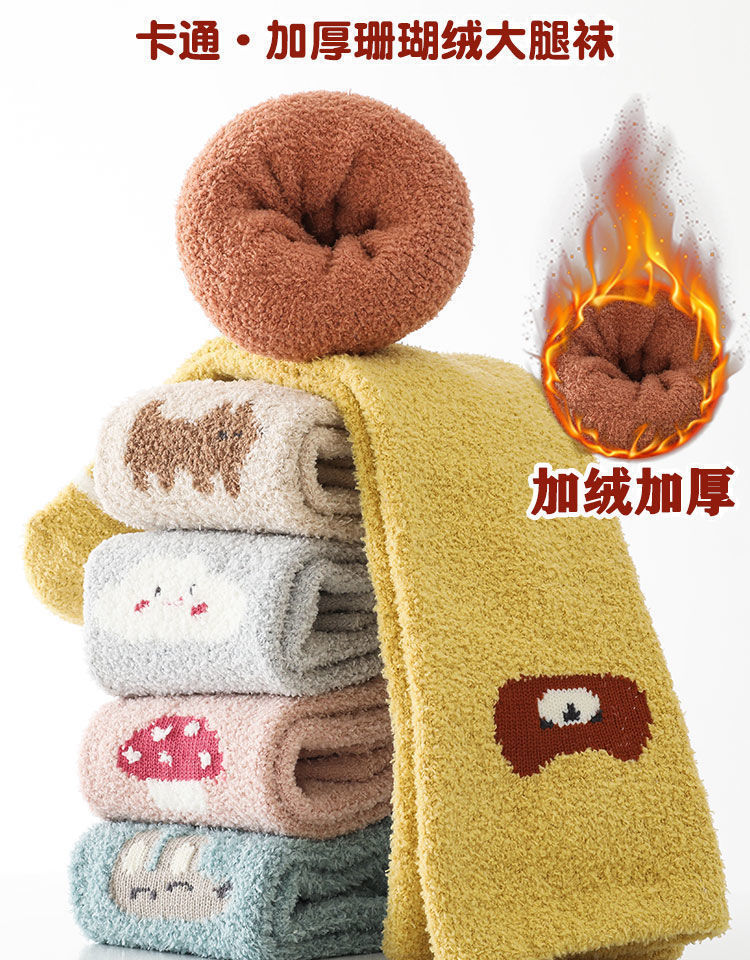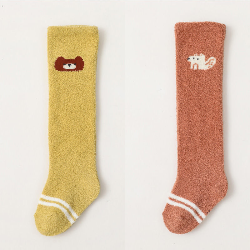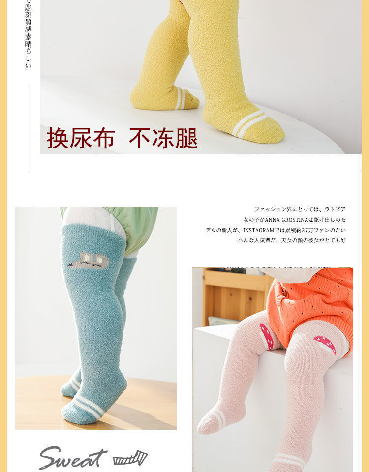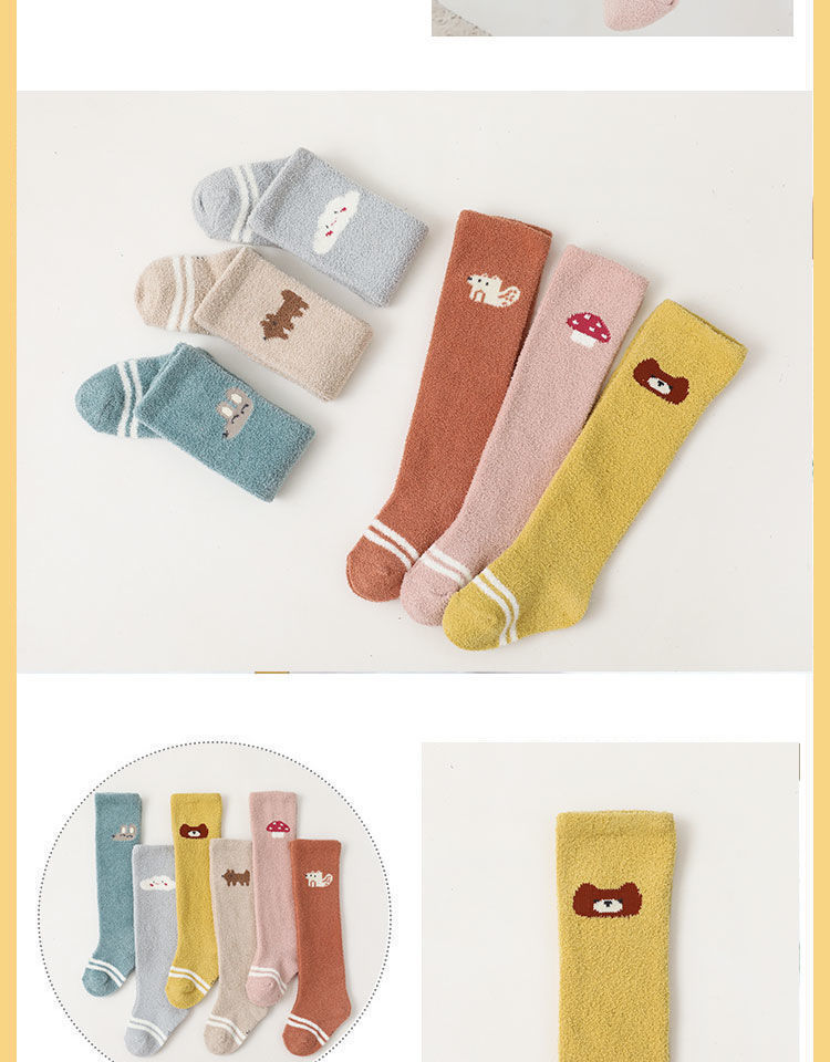 아기 스타킹 가을과 겨울 두꺼운 아기 무릎 다리 어린이 바닥 양말 만화 산호 양털 아기 양말