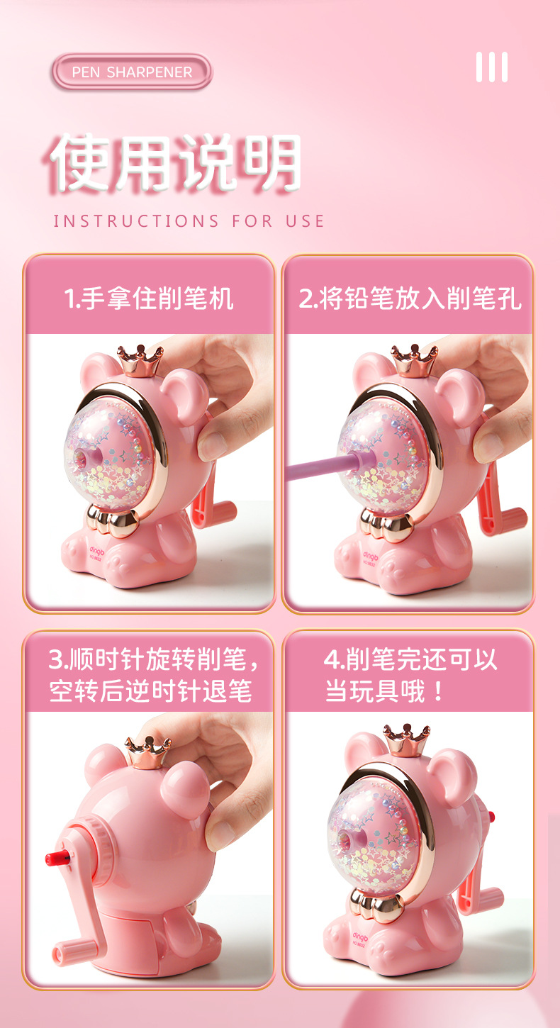 크리스마스 선물 만화 귀여운 곰 연필 깎이 학생 실용적인 안티 카드 리드 연필 깎기 연필 깎기 학교 용품 도매