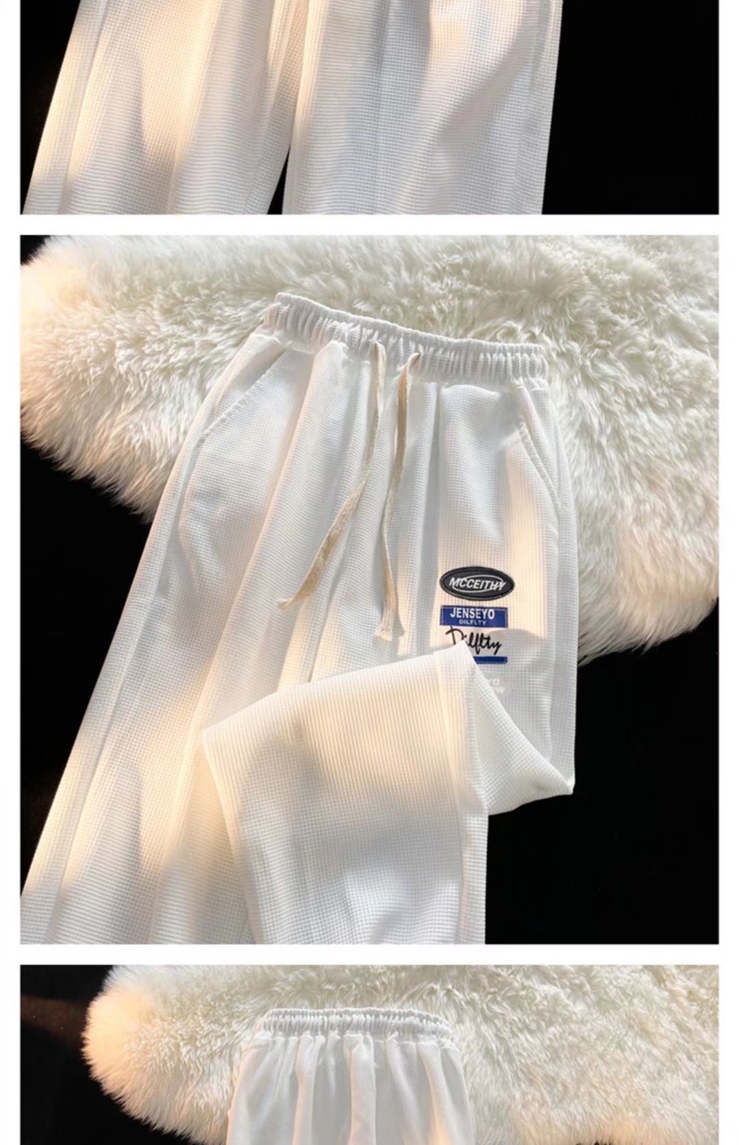 바지 남성 캐주얼 바지 모든 매치 봄 신상품 와플 홍콩 스타일 트렌디 한 다리 묶인 바지 하이 스트리트 스포츠 바지스토어 가기