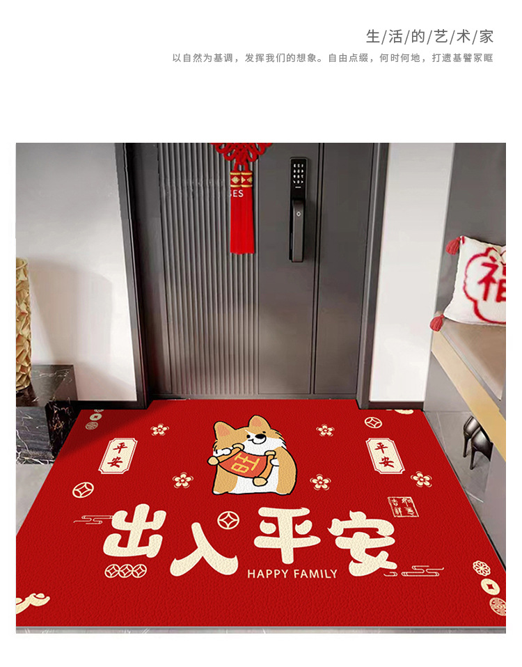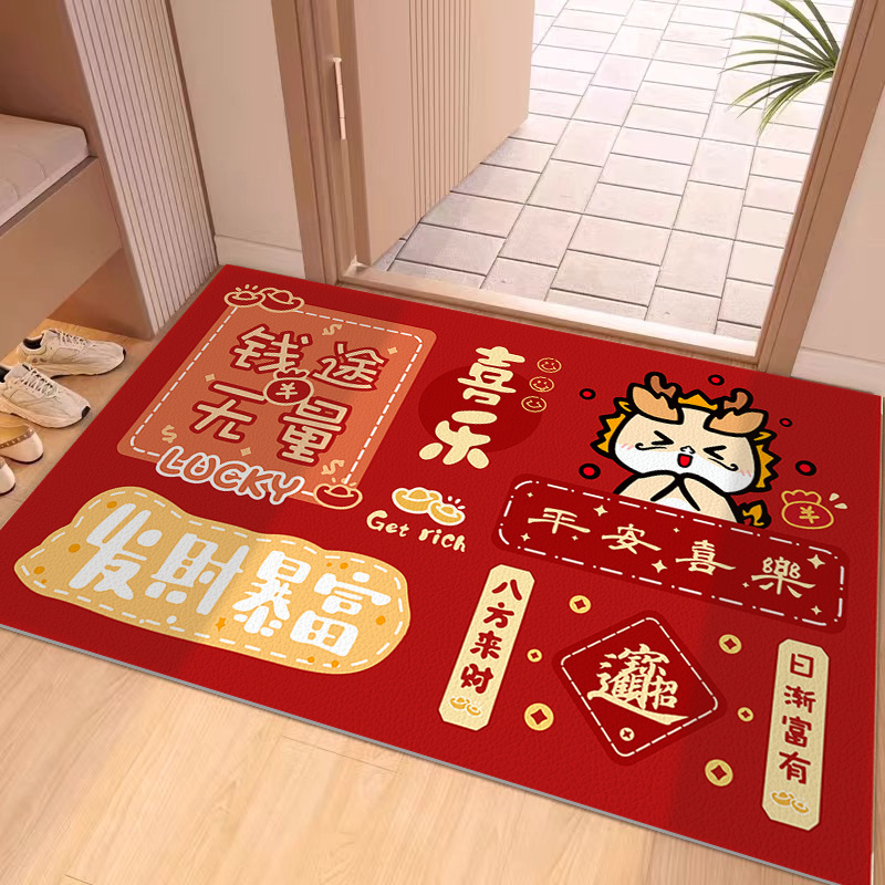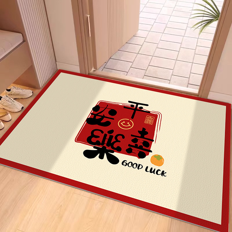 새해 중국식 절단 가죽 바닥 매트 홈 워시프리 지울 수 있는 PVC 발 매트 미끄럼 방지 이지케어 현관 매트