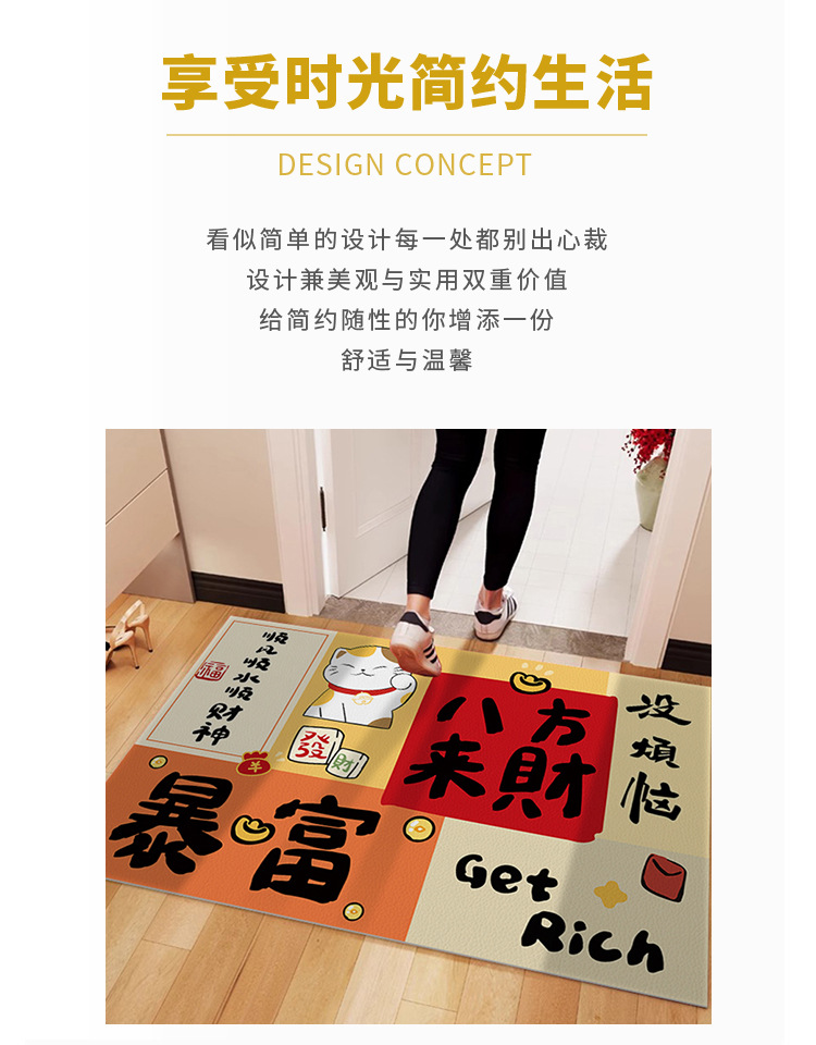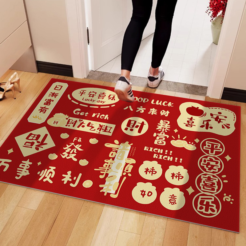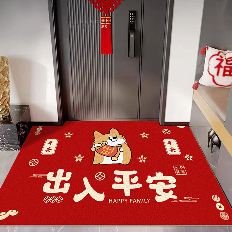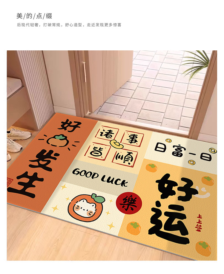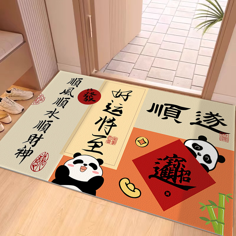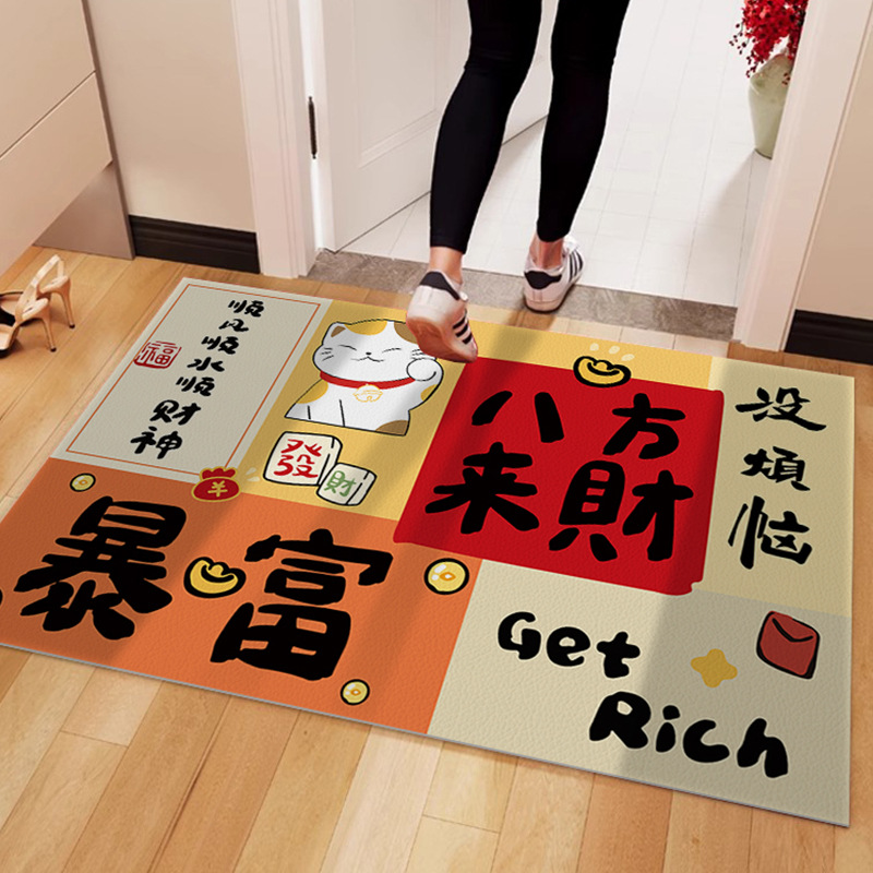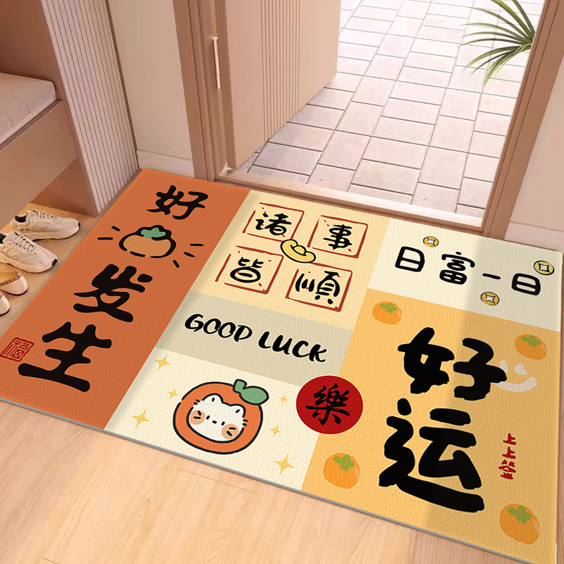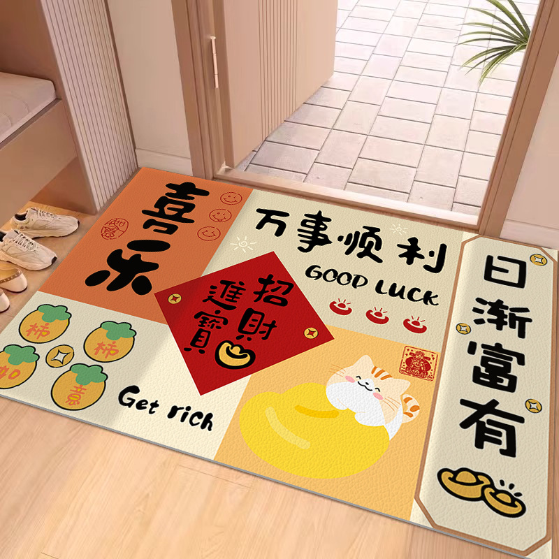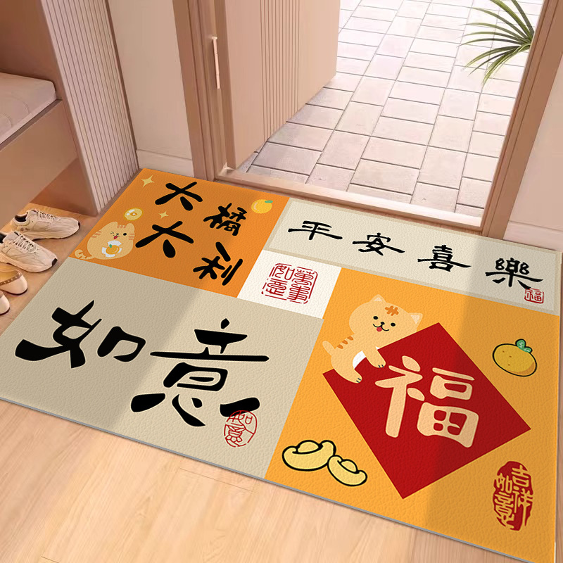 새해 중국식 절단 가죽 바닥 매트 홈 워시프리 지울 수 있는 PVC 발 매트 미끄럼 방지 이지케어 현관 매트스토어 가기