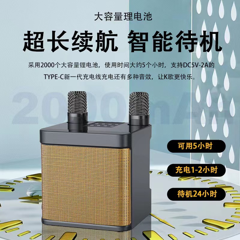 YS203K 노래 블루투스 오디오 국경 무선 듀얼 마이크 KTV 올인원 홈 야외 203 블루투스 스피커스토어 가기