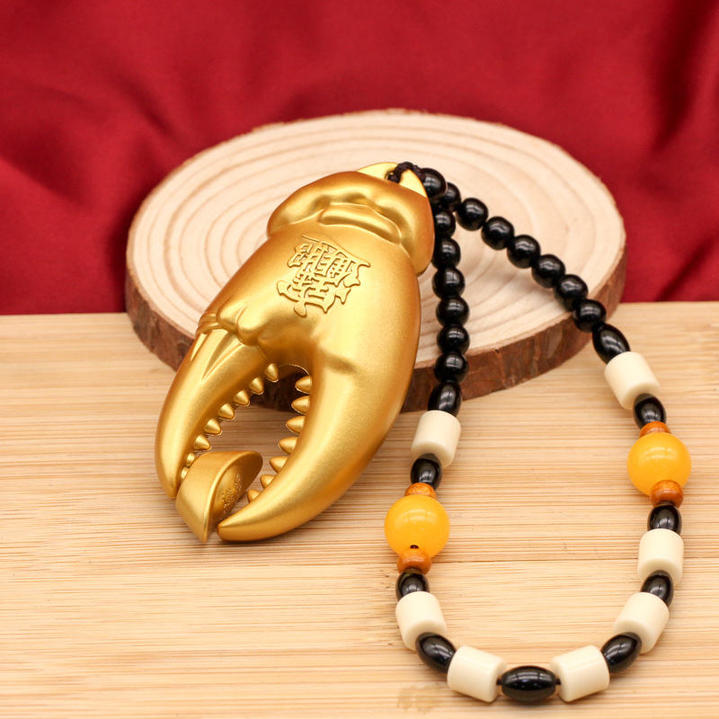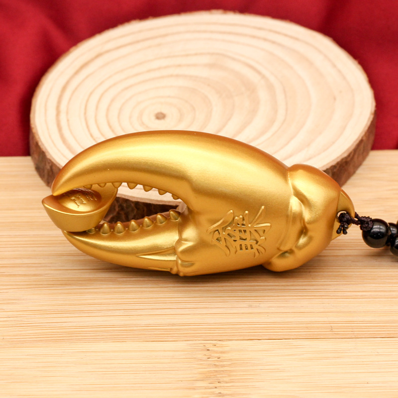 손에 돈이 있고 손에 클램프, 손잡이, 펜던트, 금도금 게 클램프가 선물을 보냅니다.스토어 가기