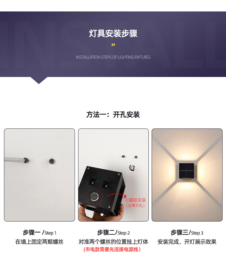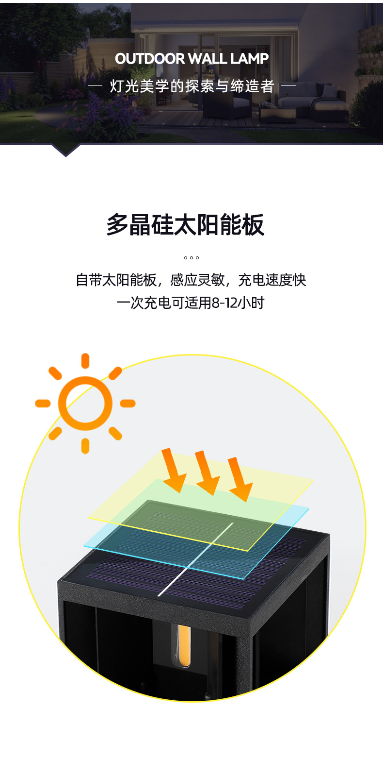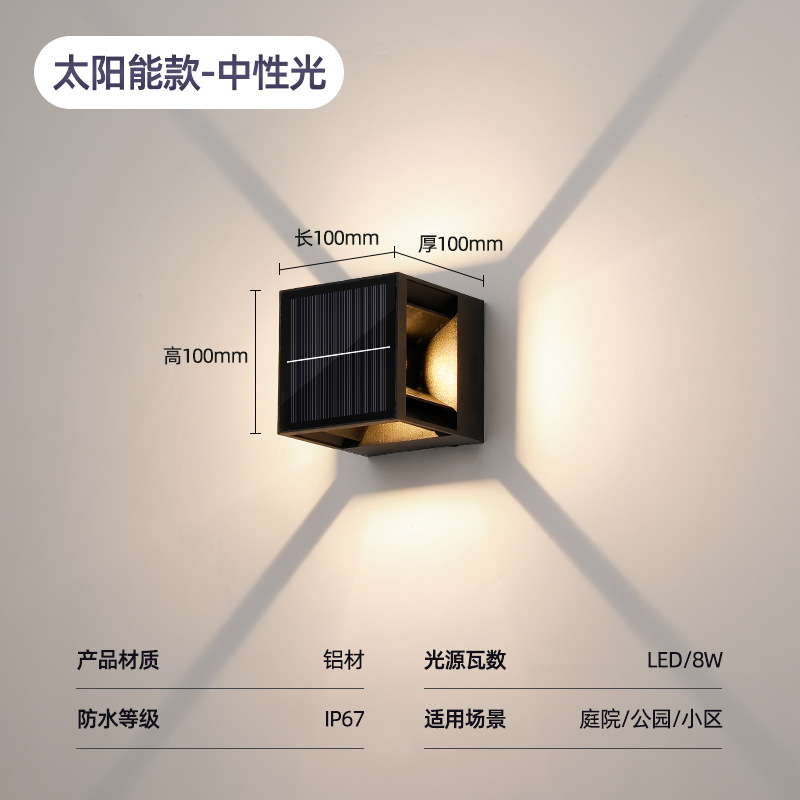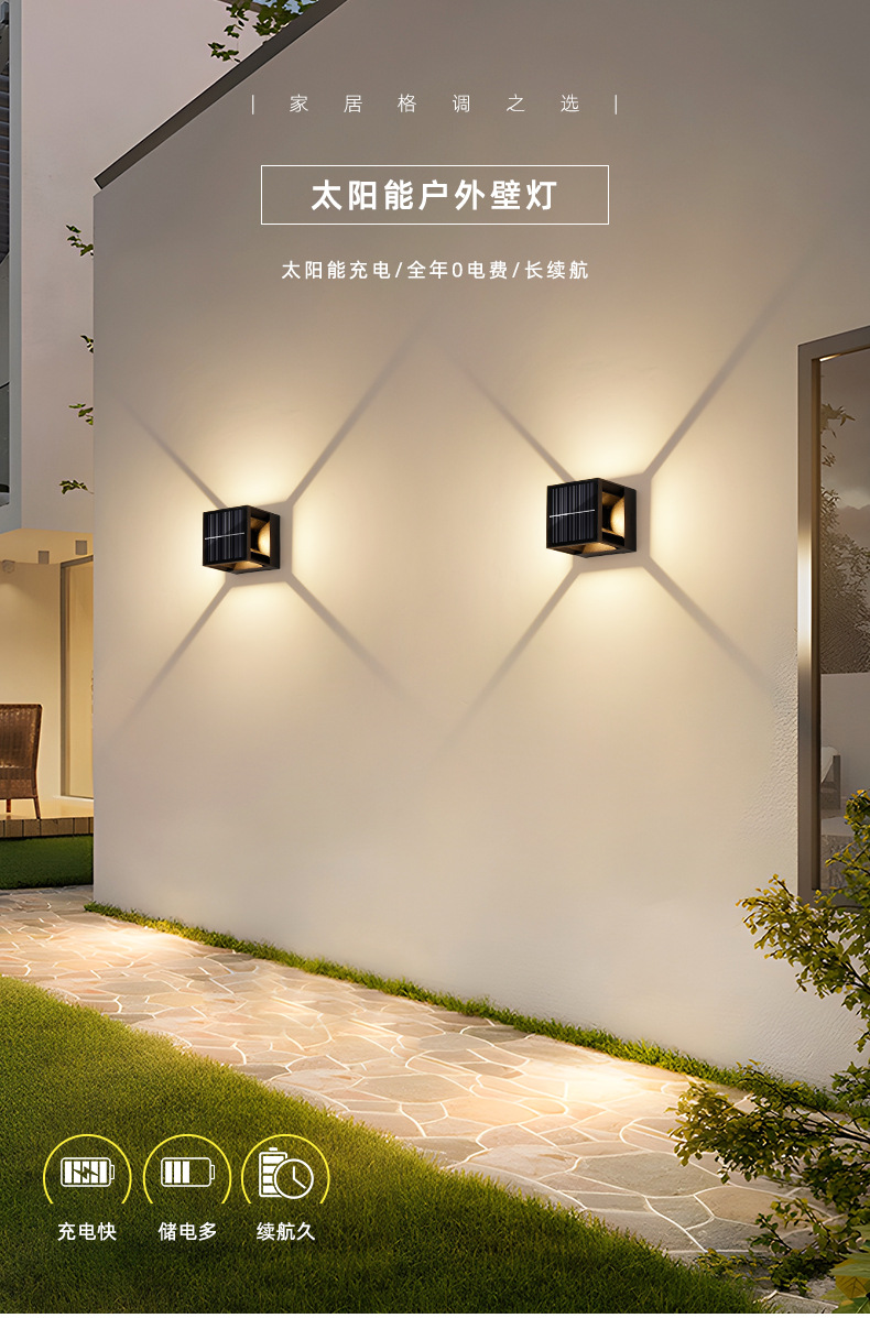 배선이 필요 없는 야외 태양광 정원 벽등 방수 벽 세척등 실외 외벽 발코니 출입구 충전식 센서등