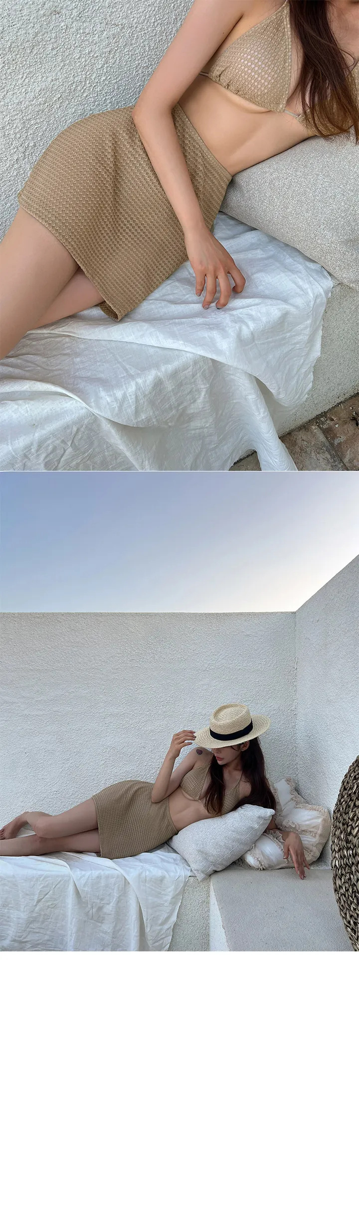 2024 한국식 새로운 순수한 바람 3 피스 수영복 질감 하이 웨이스트 배꼽 덮음 스타일 여성용 온천 수영복스토어 가기
