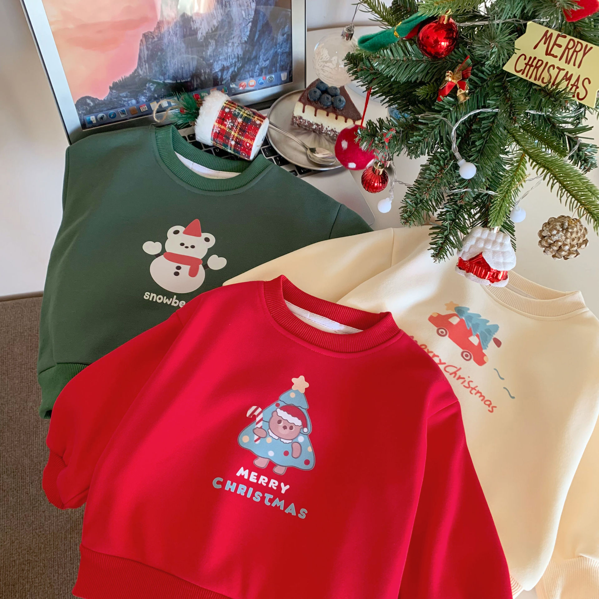 가을과 겨울 어린이 기모 스웨터 크리스마스 귀여운 여아 코트 아기 만화 따뜻한베이스 셔츠 휴일 탑스토어 가기