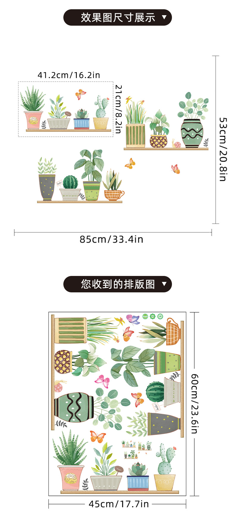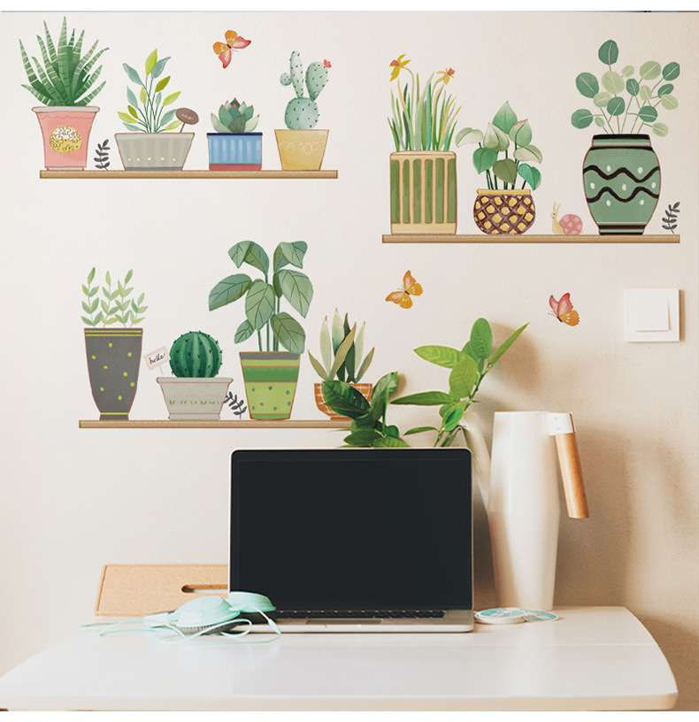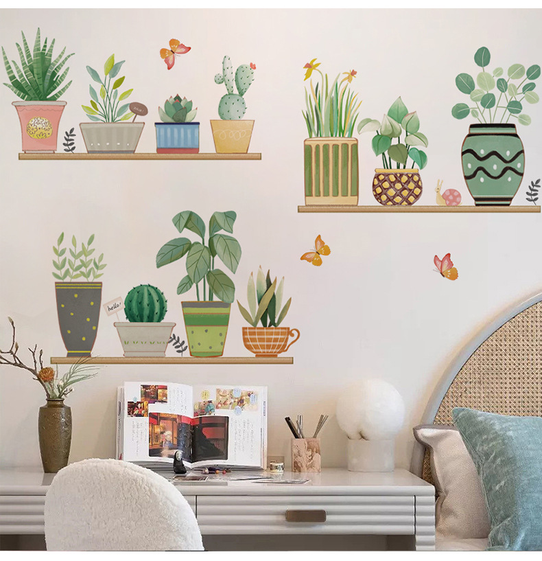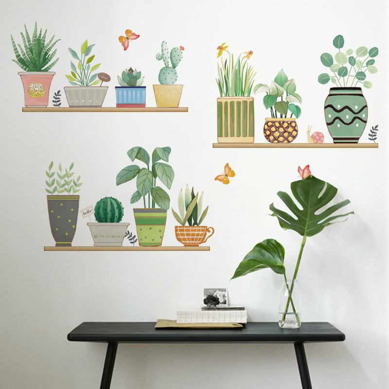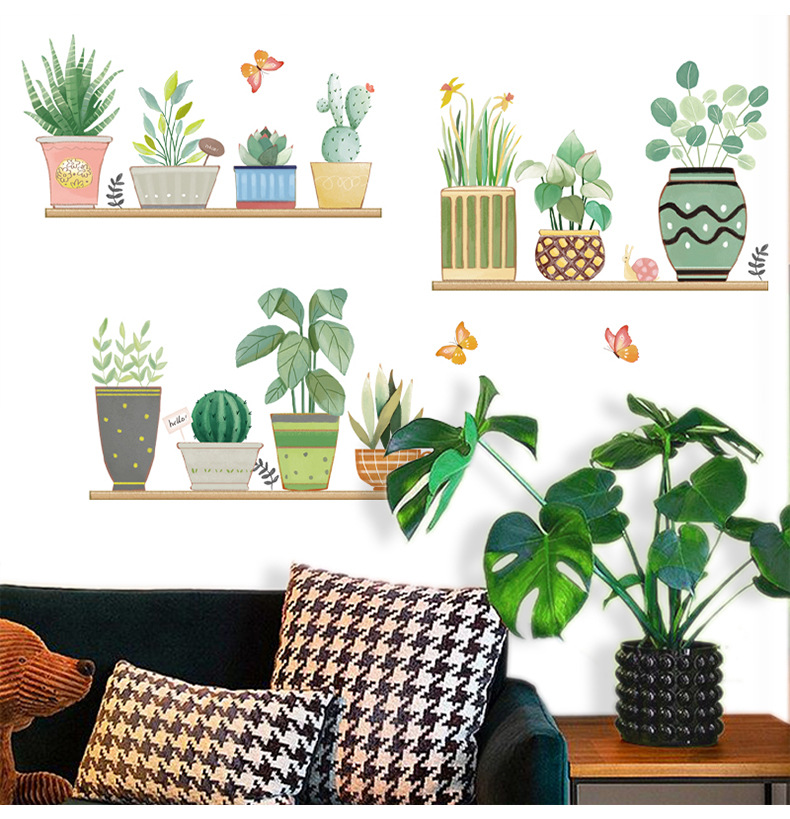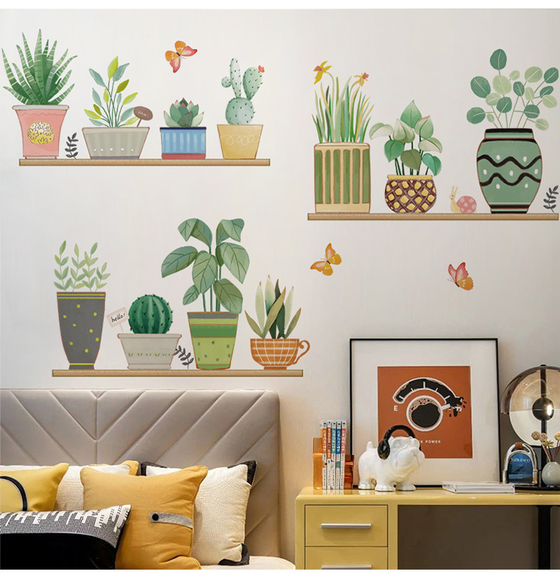 컬러 벽 스티커 CH46049 다채로운 녹색 식물 홈 작은 신선한 스타일 화분 식물 거실 소파 배경 벽