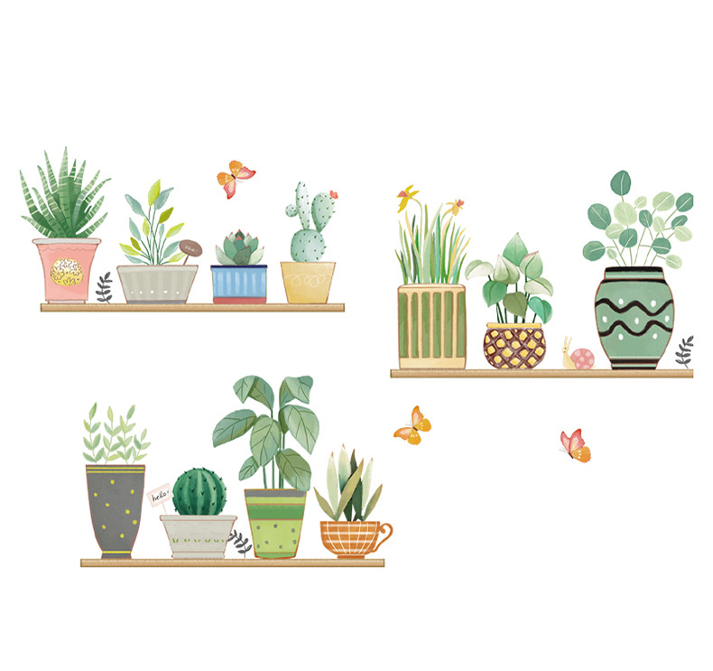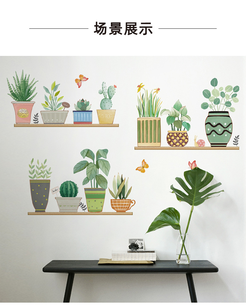 컬러 벽 스티커 CH46049 다채로운 녹색 식물 홈 작은 신선한 스타일 화분 식물 거실 소파 배경 벽스토어 가기