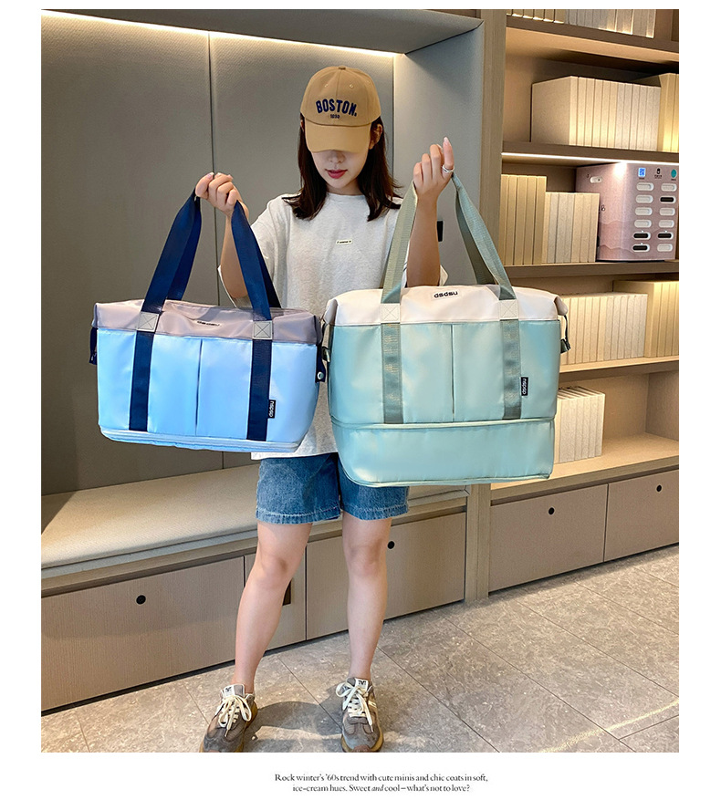 대용량 휴대용 여행가방, 건습 분리 피트니스 가방, 대비색 요가 가방, 확장 가능한 단거리 수납 수하물 가방스토어 가기