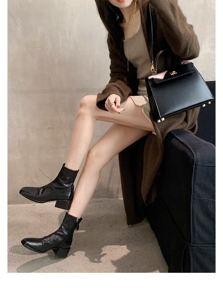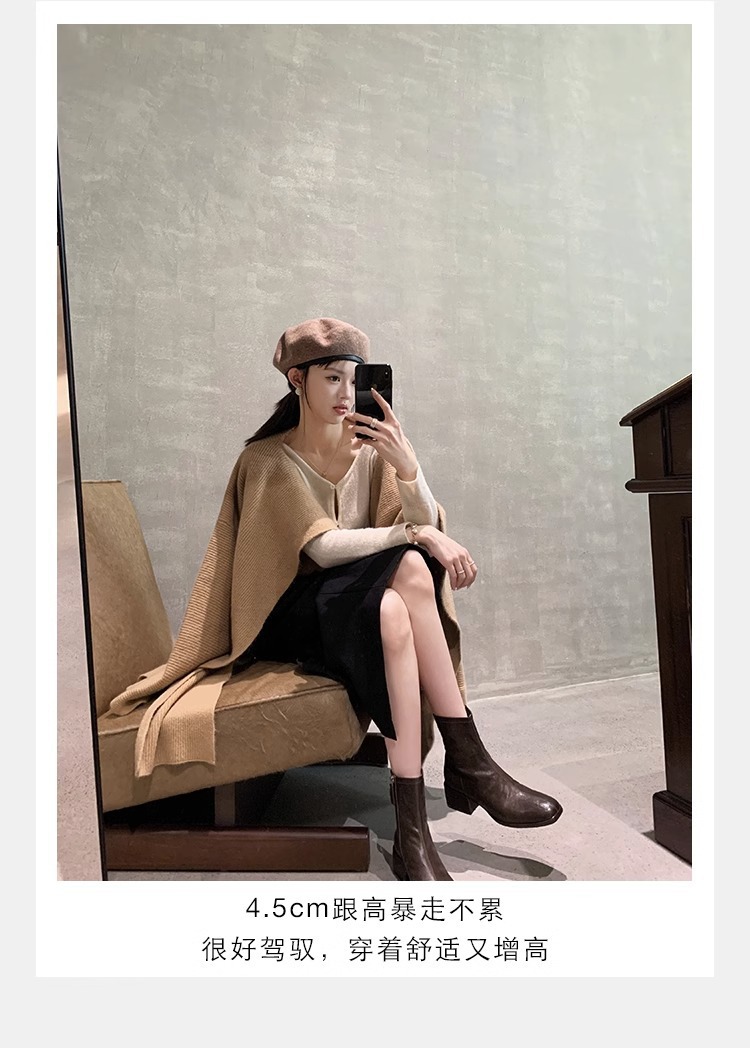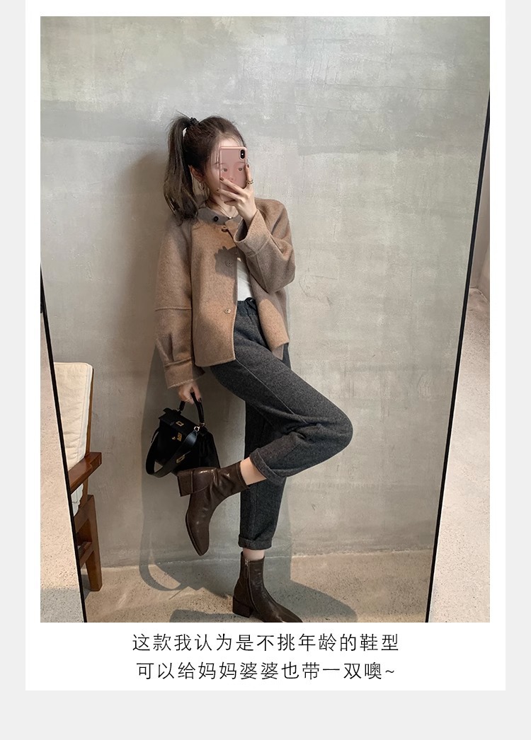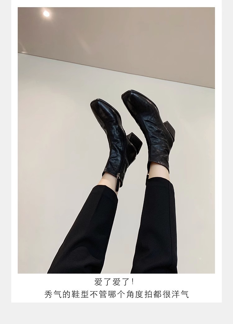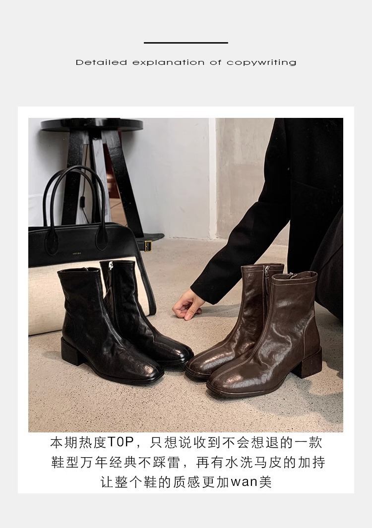 고급 감각 소가죽 버전 ~ 가을과 겨울의 포도 엄마 스퀘어 헤드 워싱 말 가죽 얇은 짧은 부츠 여성용 두꺼운 뒤꿈치 작은 발목 부츠스토어 가기