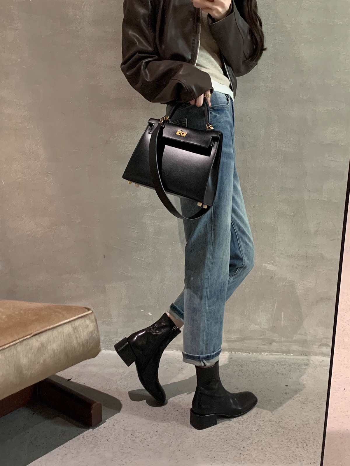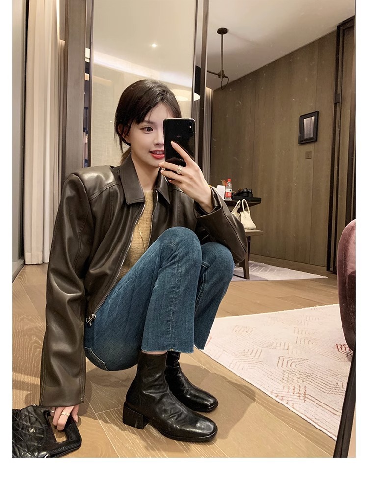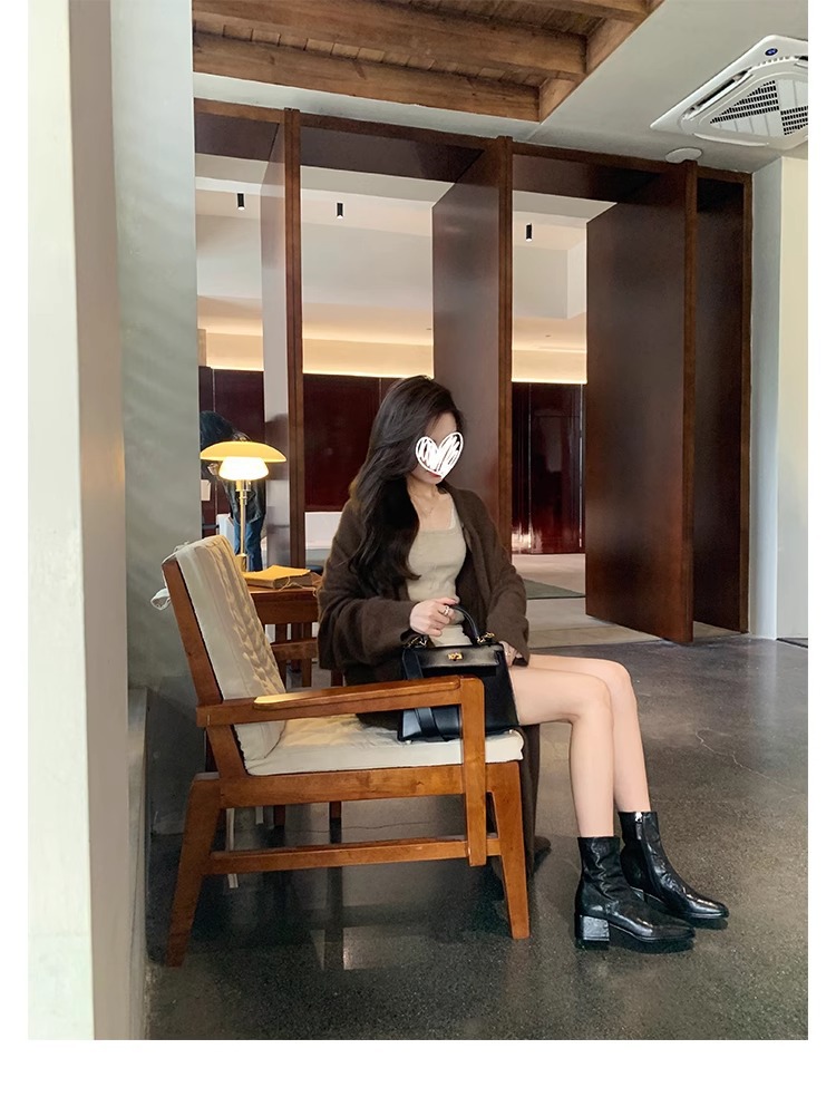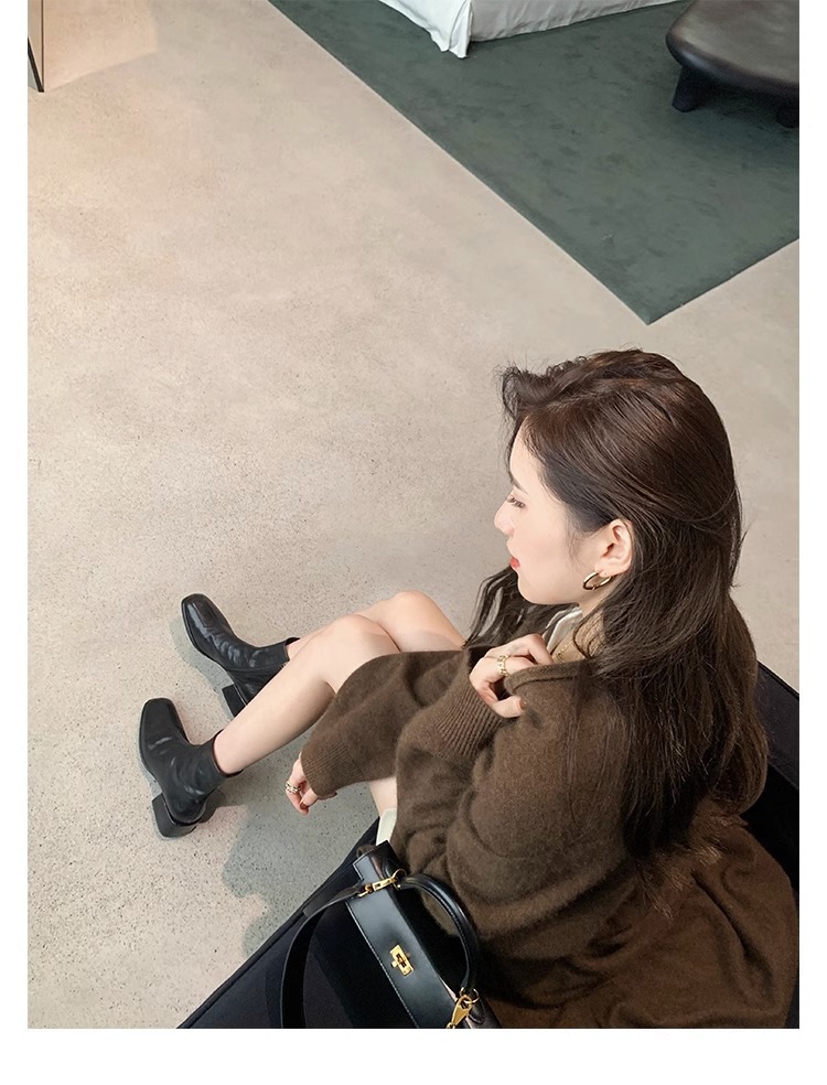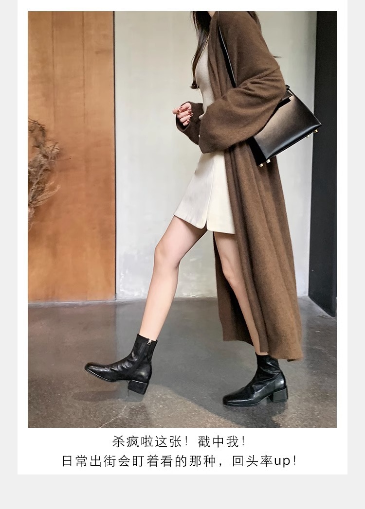 고급 감각 소가죽 버전 ~ 가을과 겨울의 포도 엄마 스퀘어 헤드 워싱 말 가죽 얇은 짧은 부츠 여성용 두꺼운 뒤꿈치 작은 발목 부츠스토어 가기