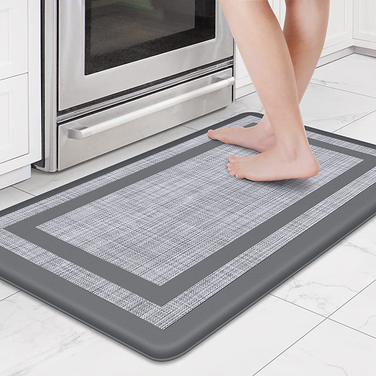 아마존 새로운 더블 프레임 가죽 주방 PVC 바닥 매트 내유성 방수 홈 도어 매트 스크럽 발 매트