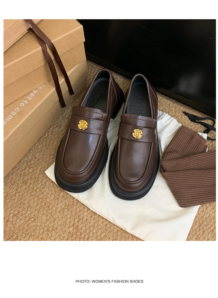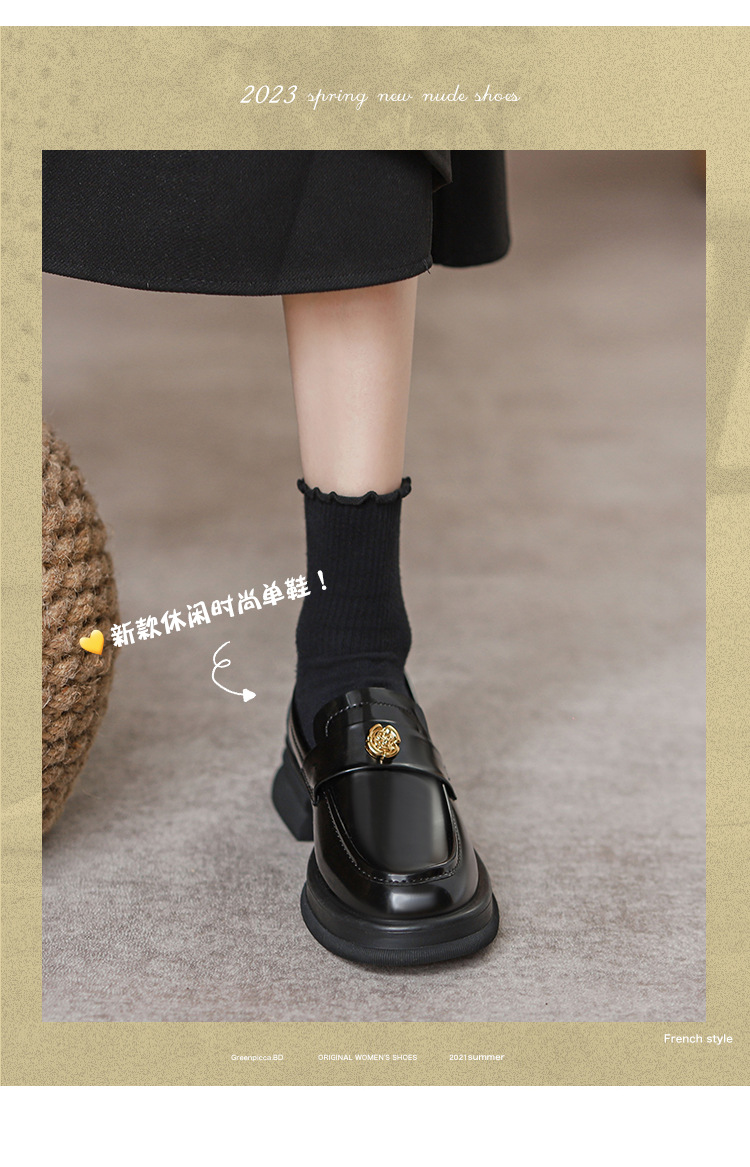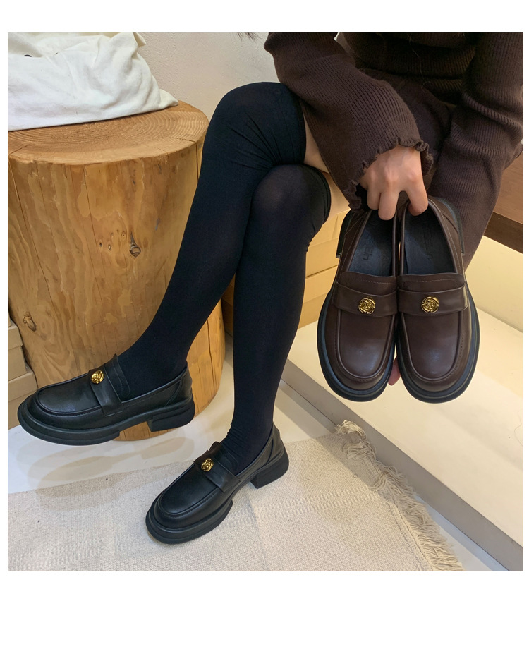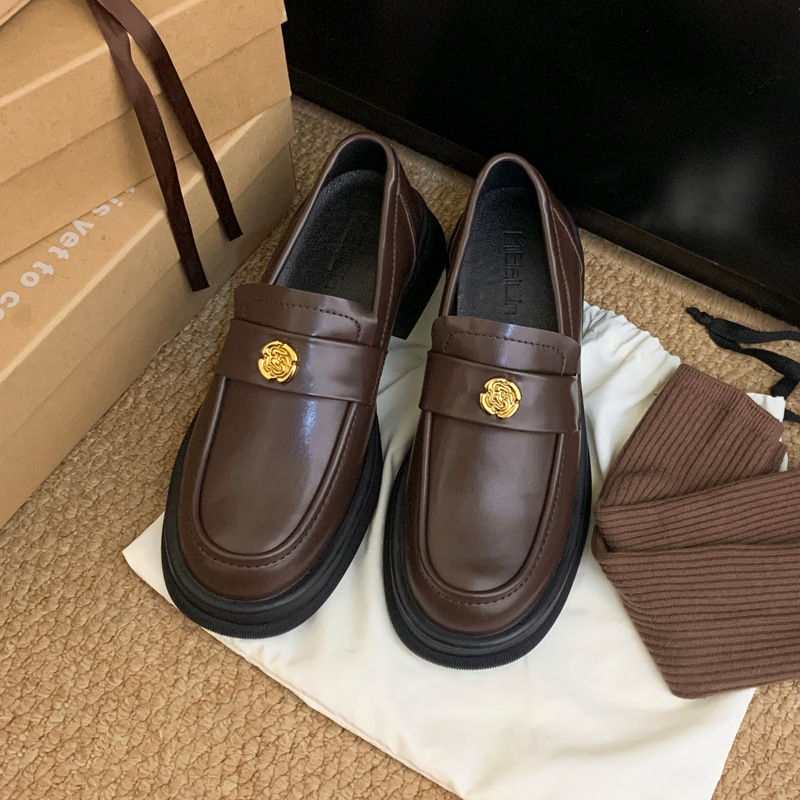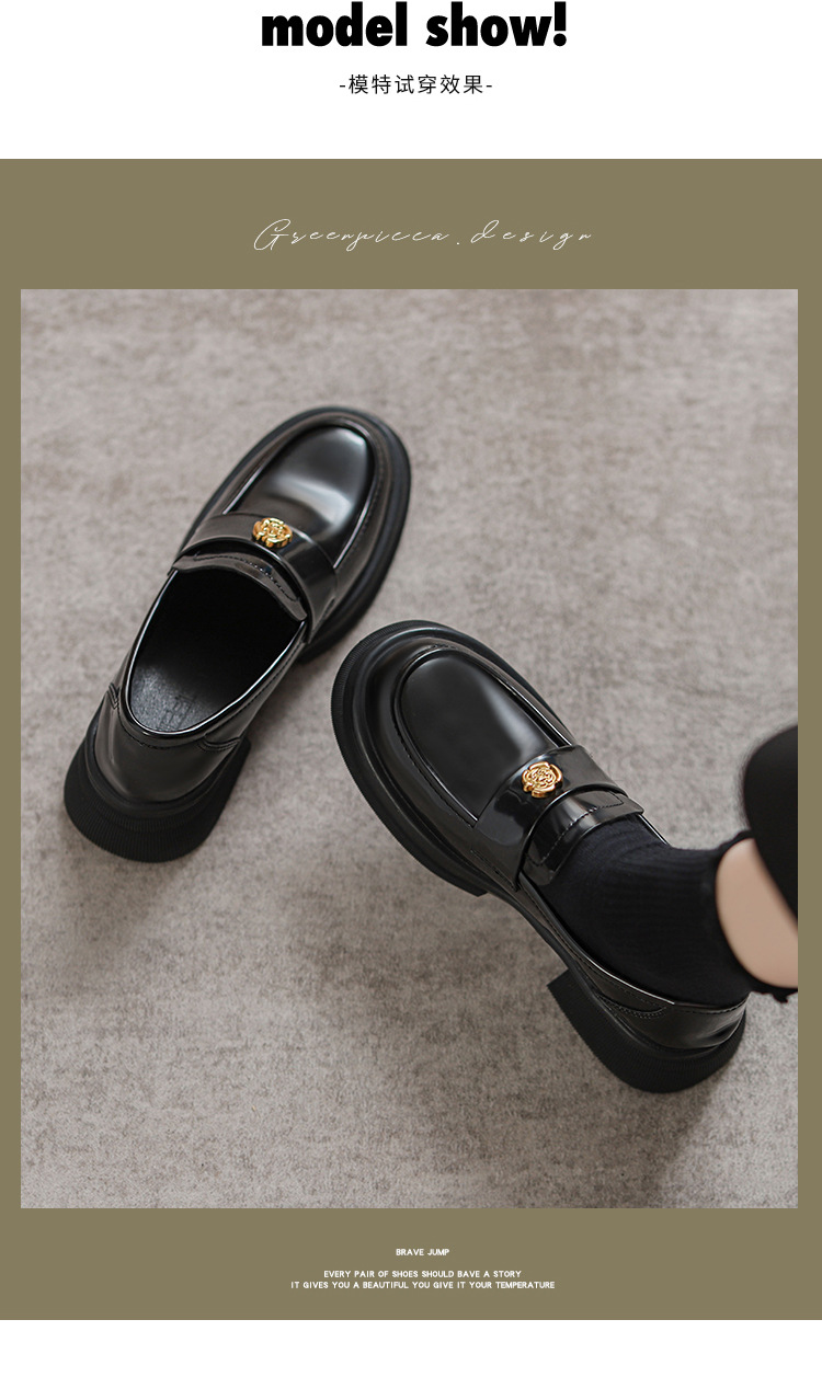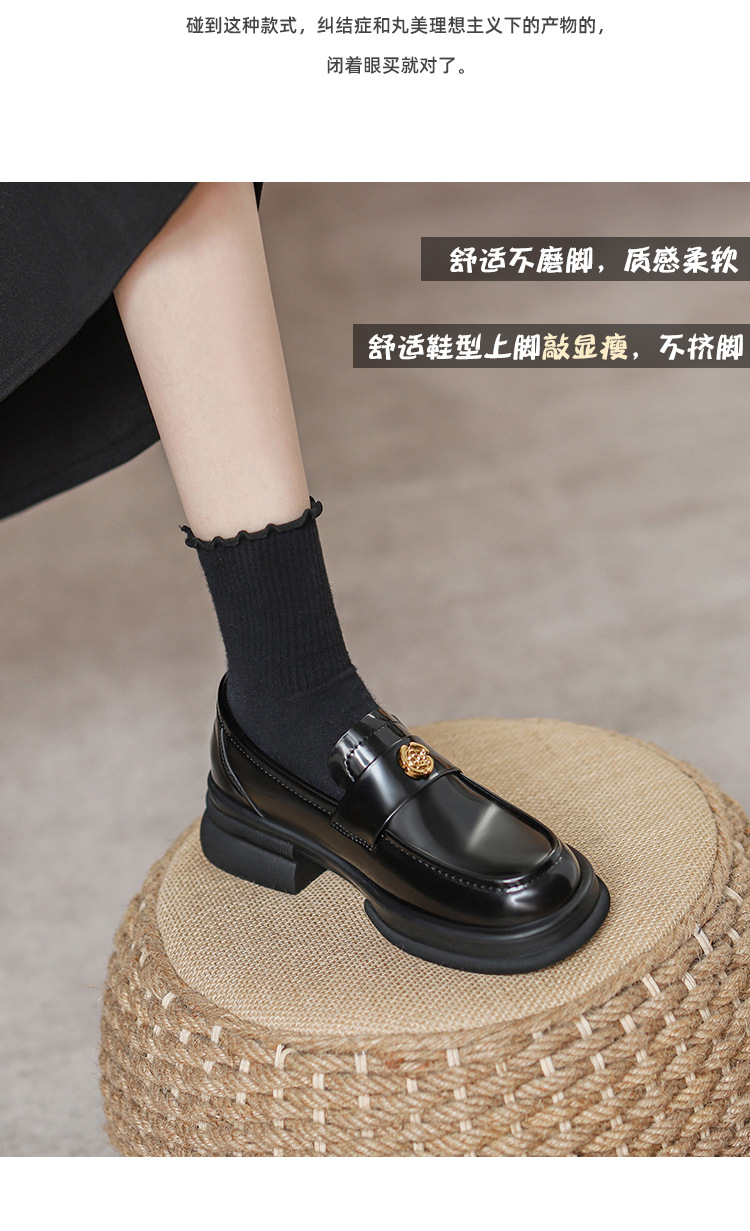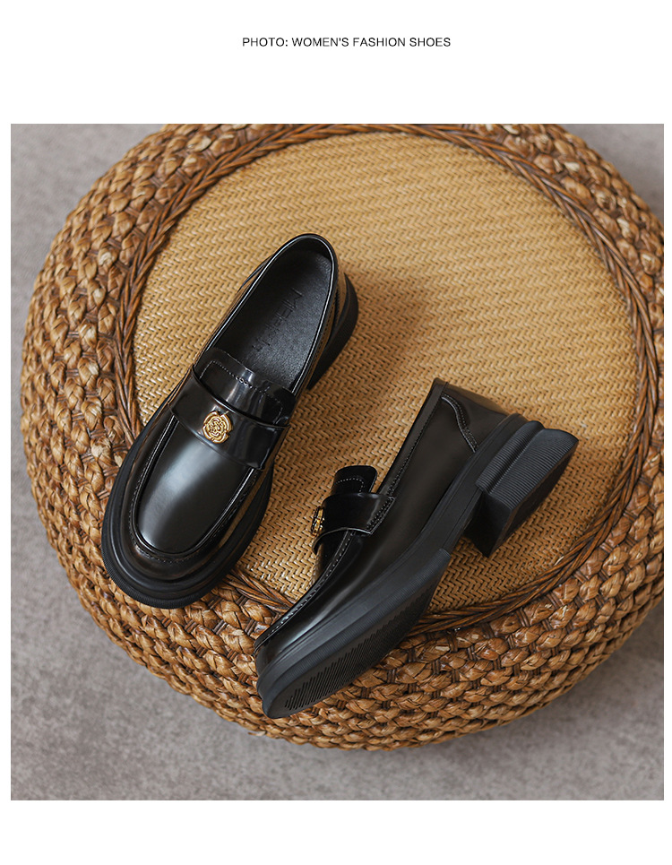 2024 새로운 여성 신발 동백 로퍼 영국 스타일 학생 작은 가죽 신발 두꺼운 굽 두꺼운 단독 신발 제조 업체스토어 가기