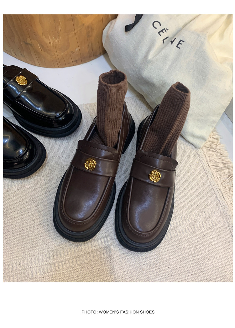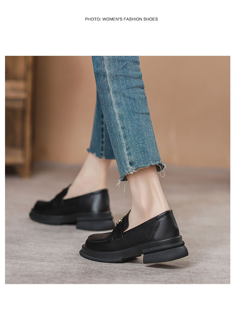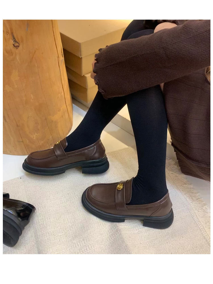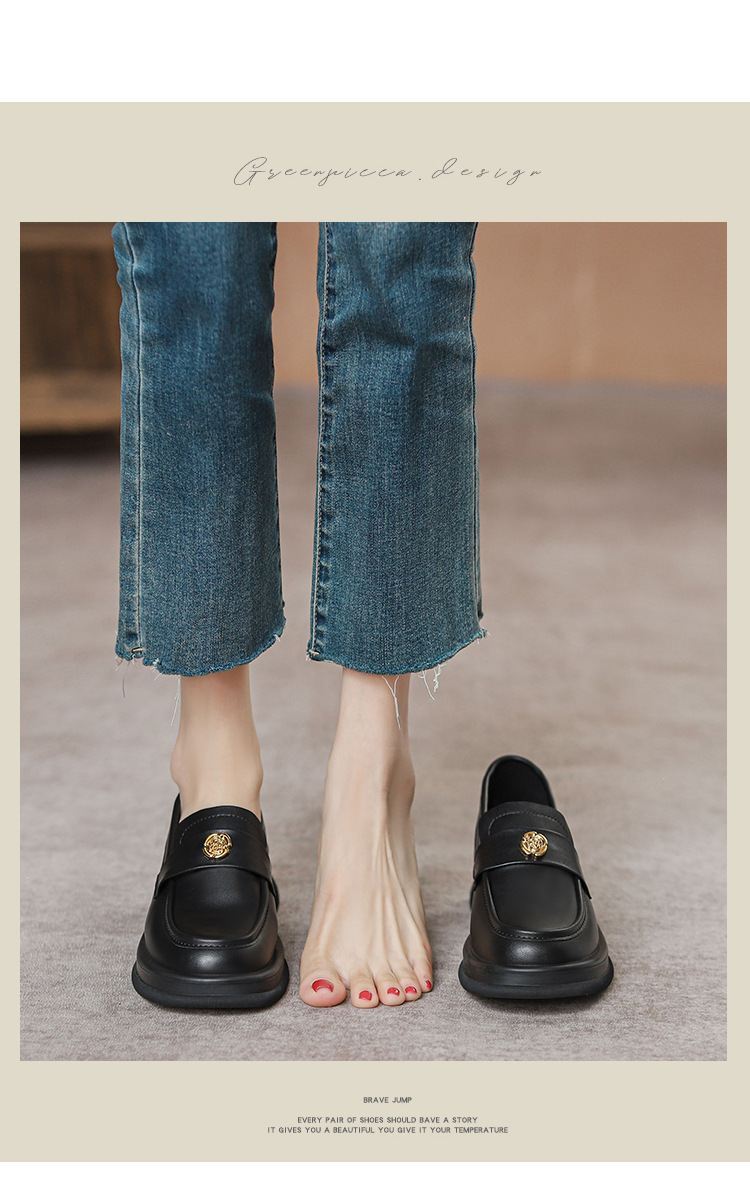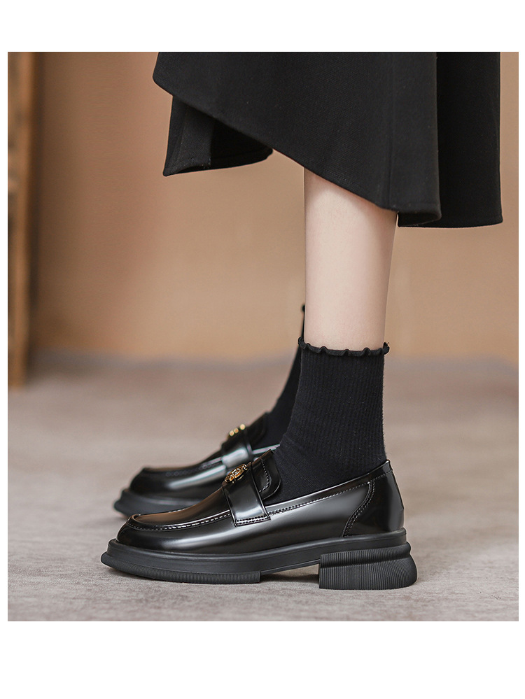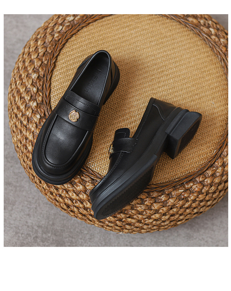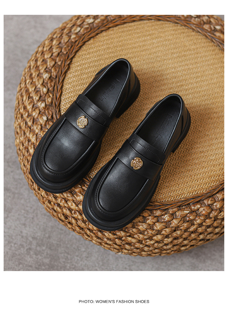 2024 새로운 여성 신발 동백 로퍼 영국 스타일 학생 작은 가죽 신발 두꺼운 굽 두꺼운 단독 신발 제조 업체스토어 가기