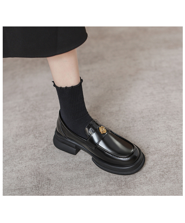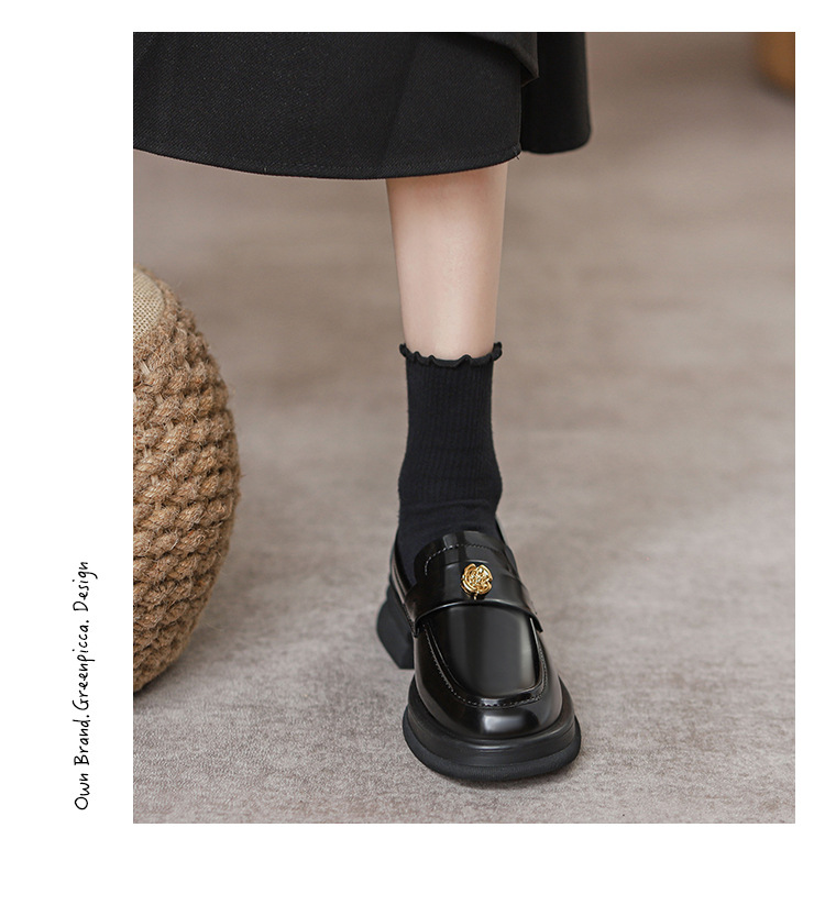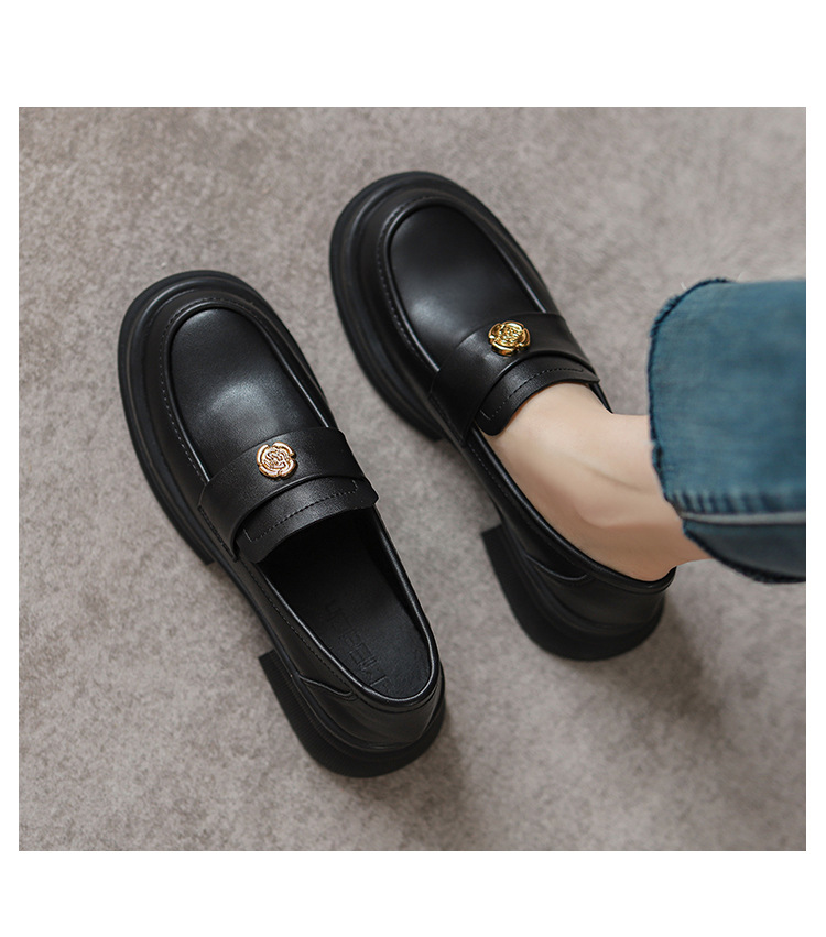 2024 새로운 여성 신발 동백 로퍼 영국 스타일 학생 작은 가죽 신발 두꺼운 굽 두꺼운 단독 신발 제조 업체