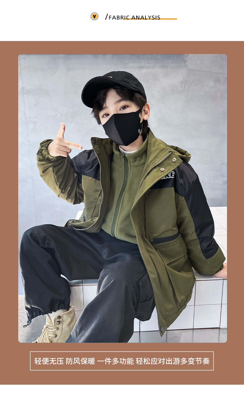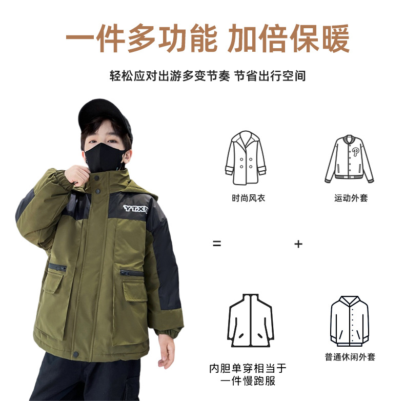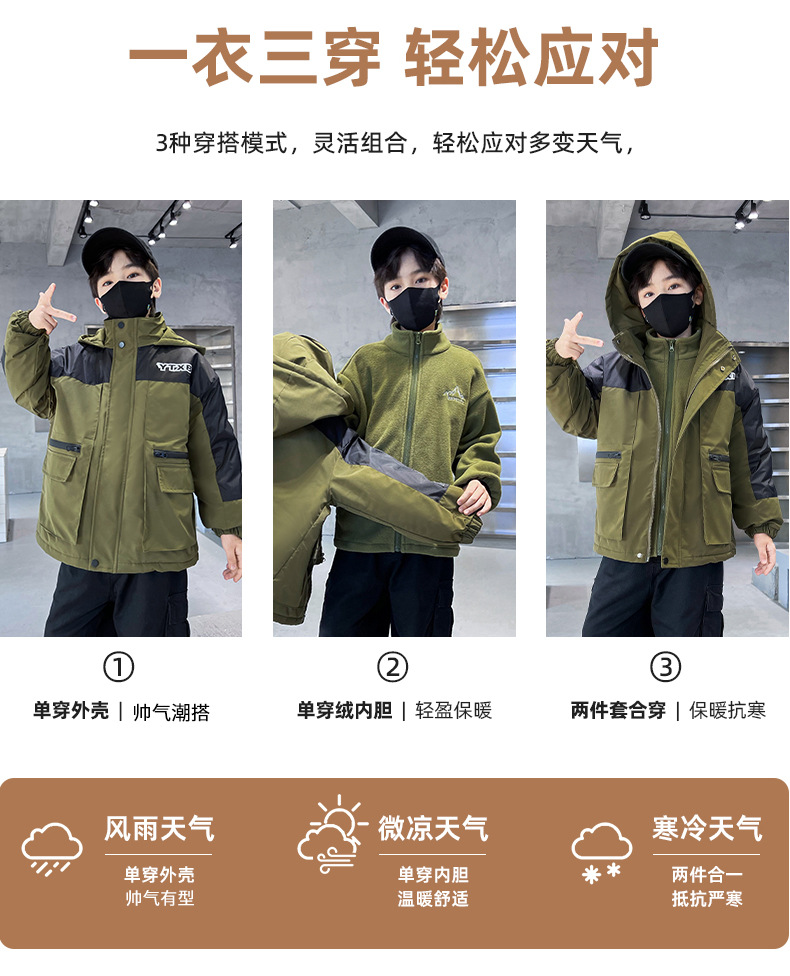 충전 옷 소년 가을과 겨울 어린이 코트 3-in-1 이동식 아기 가을 옷 기모 두꺼운 어린이 의류