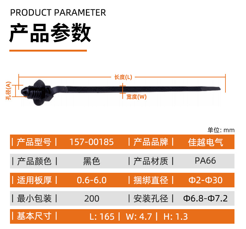 와이어 하네스 케이블 타이 157-00185 T50SOSFT7-E 둥근 구멍 전나무 스레드 헤드 케이블 타이 고정 케이블 타이스토어 가기
