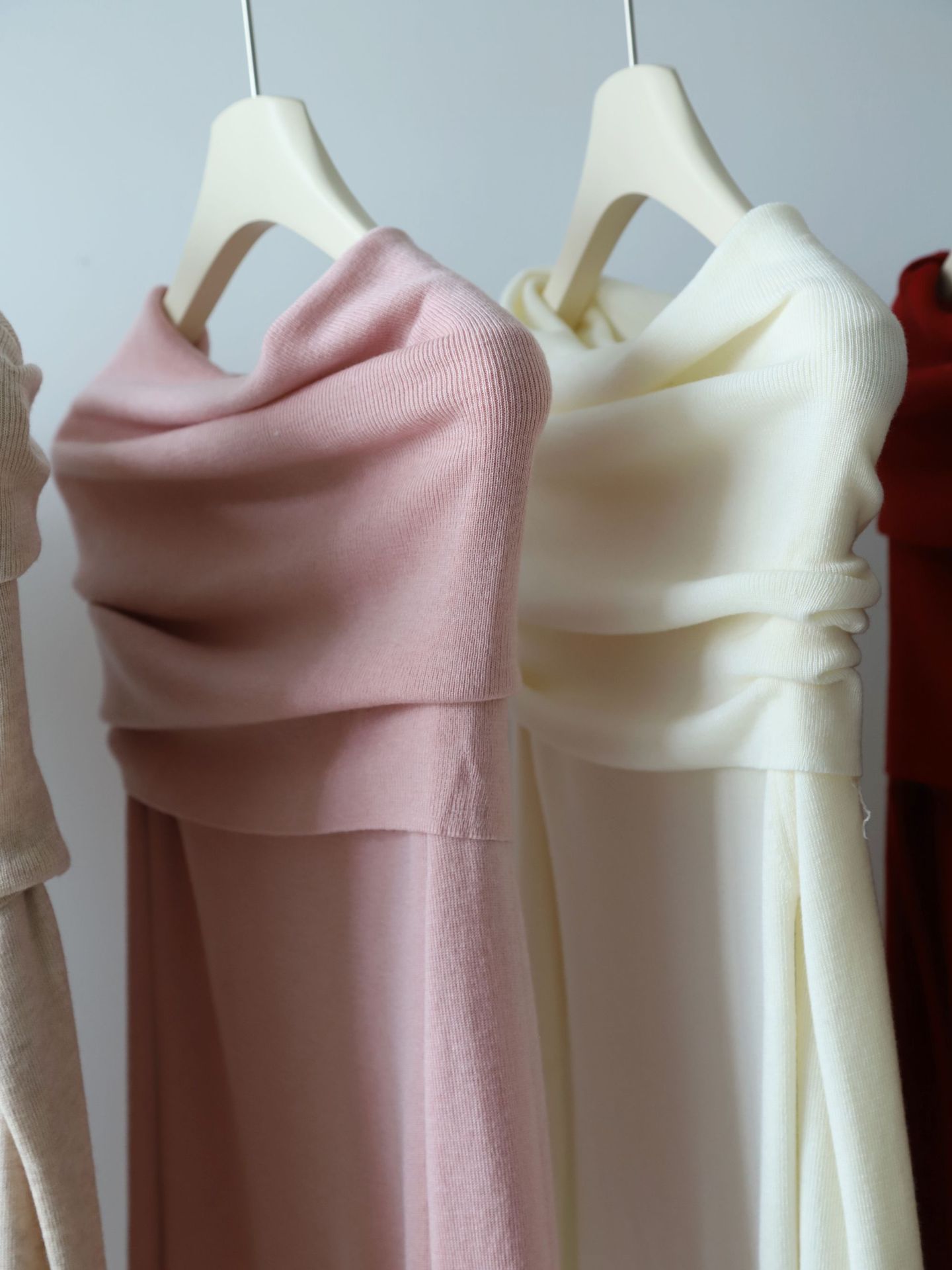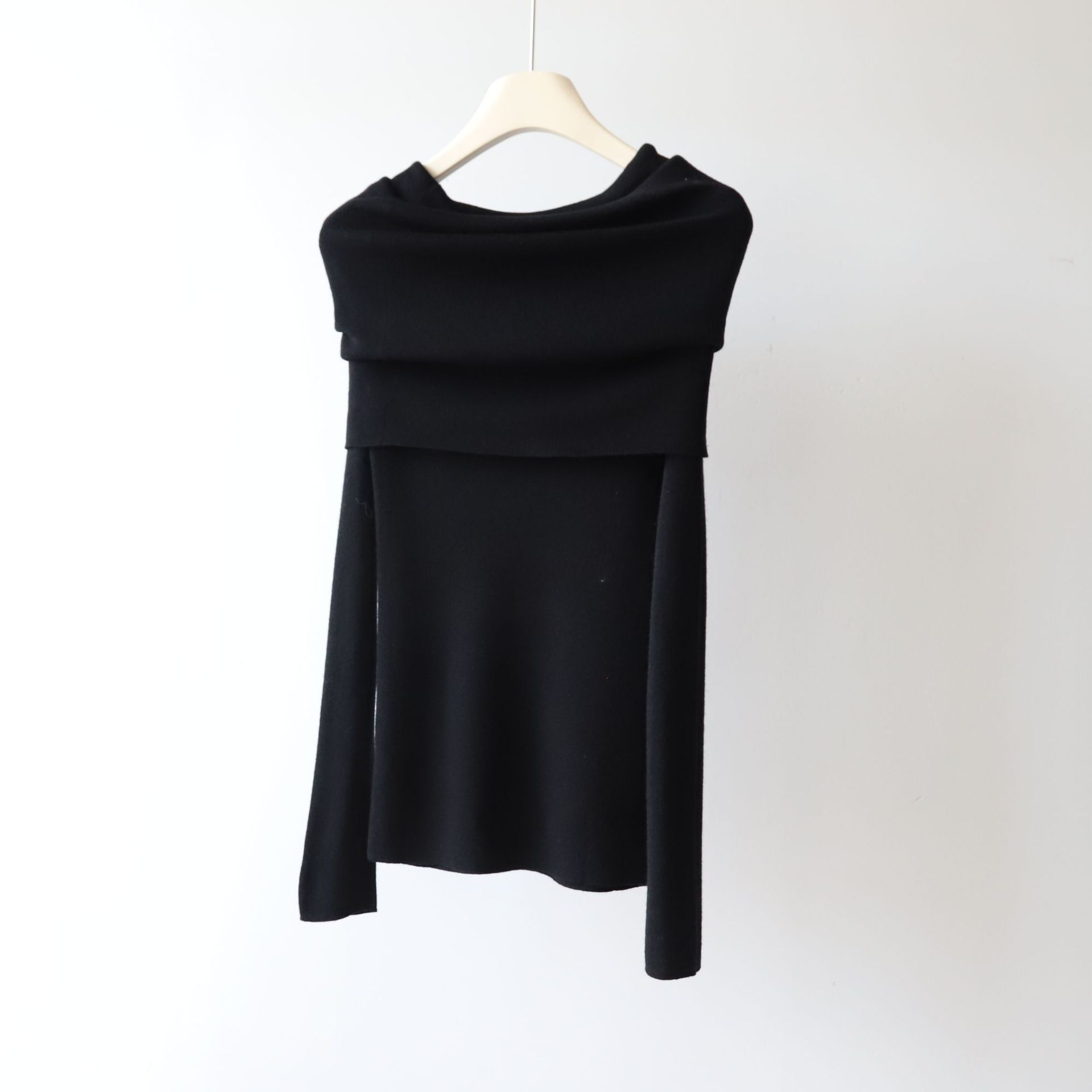 울 혼방 오프 숄더 넥 칼라 투웨어 니트 베이스 셔츠 여성의 가을과 겨울 새로운 긴팔 풀오버 내부 탑