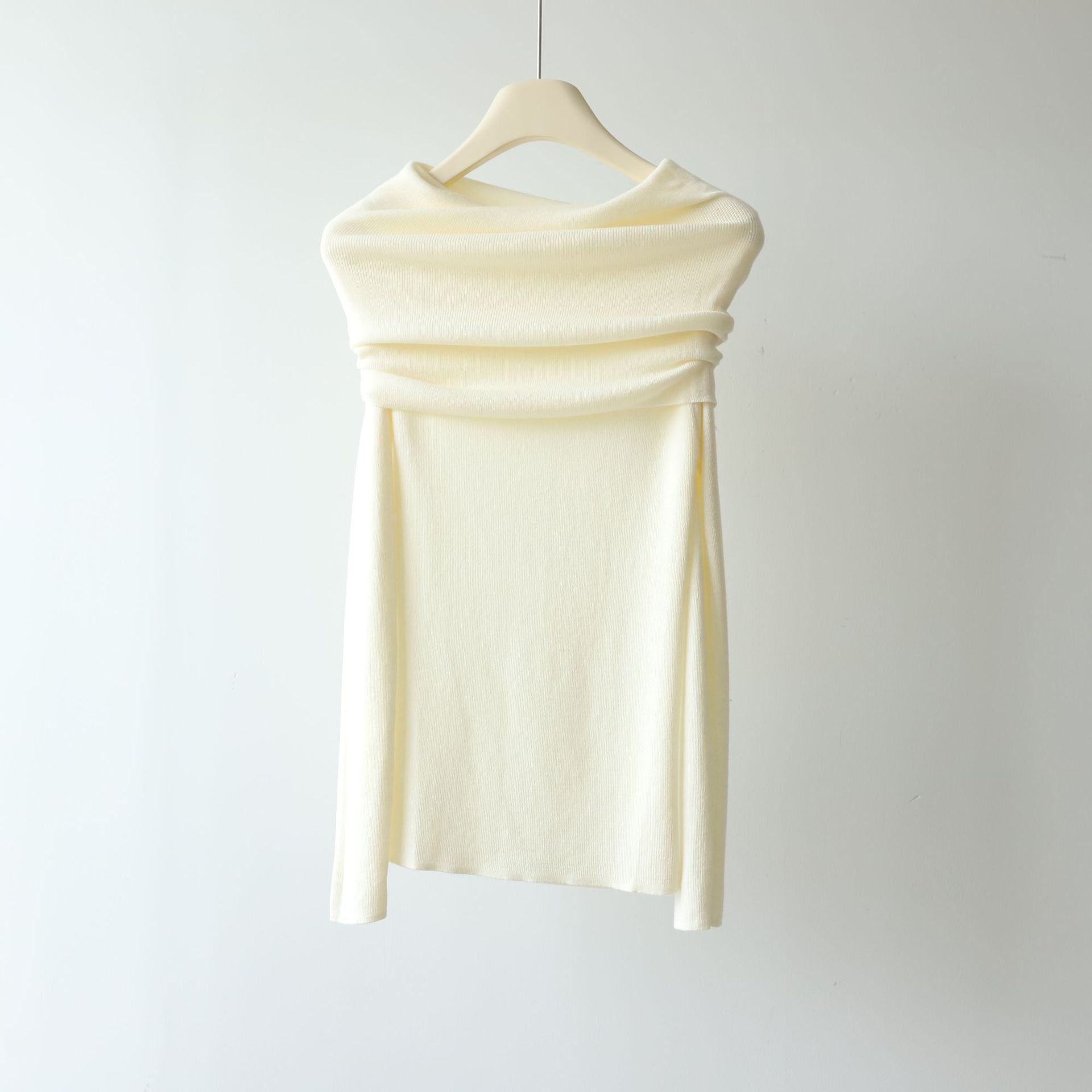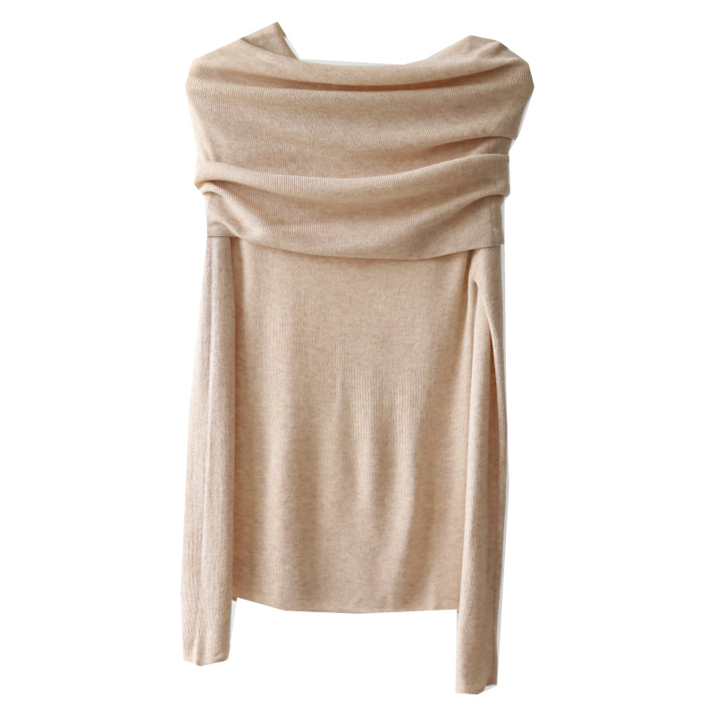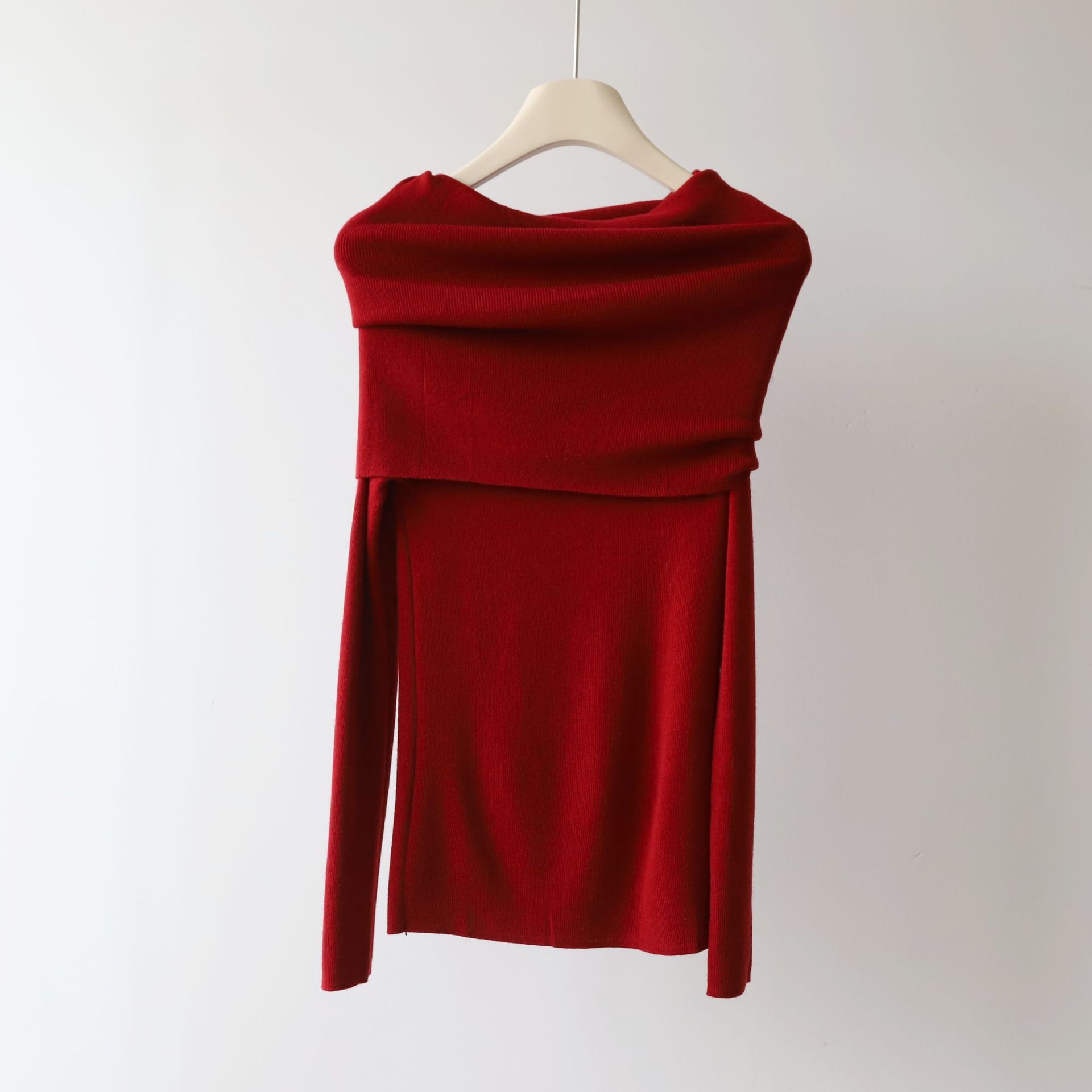 울 혼방 오프 숄더 넥 칼라 투웨어 니트 베이스 셔츠 여성의 가을과 겨울 새로운 긴팔 풀오버 내부 탑스토어 가기